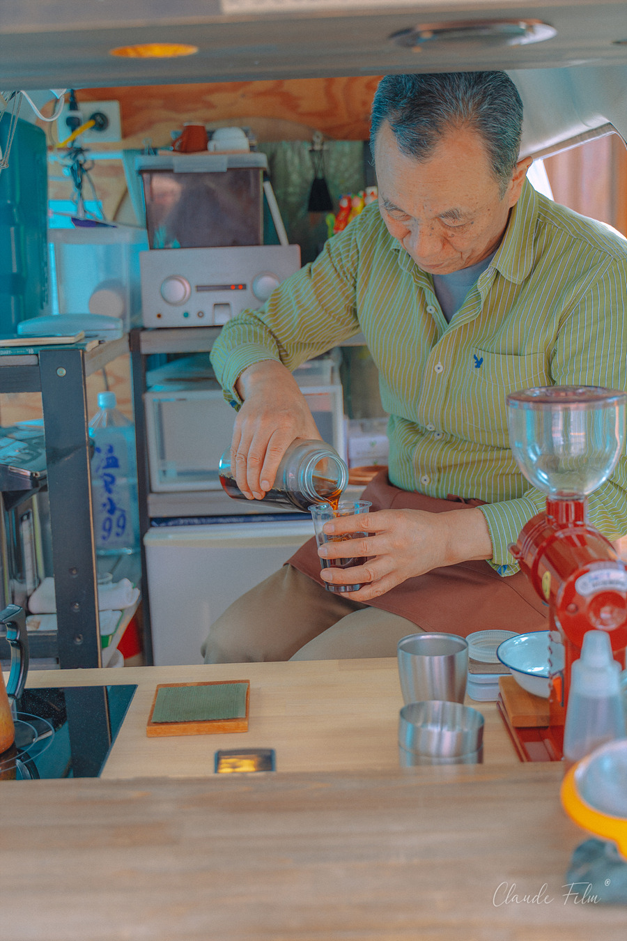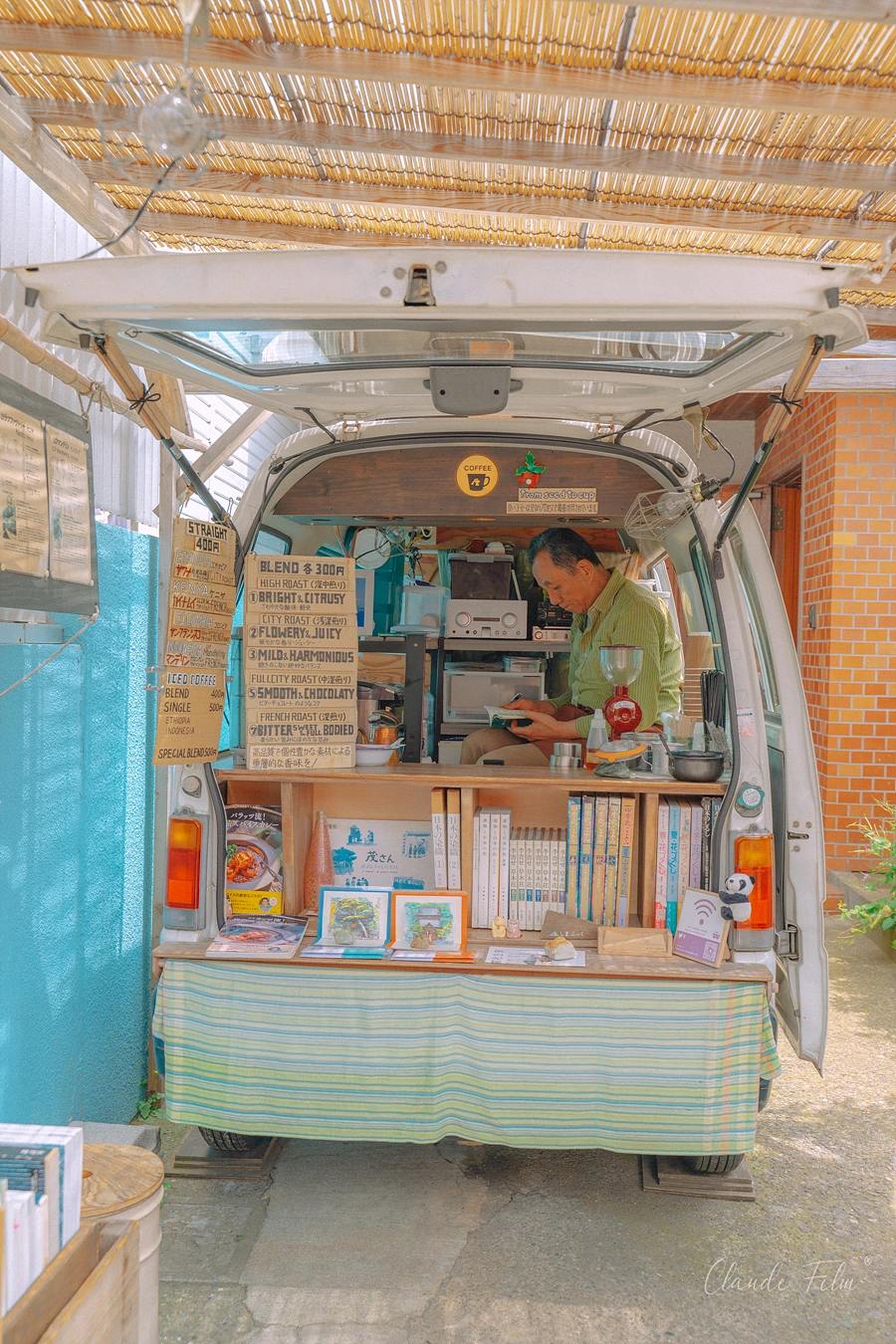 봉고차 트렁크 안에 작은 카페가 있는 게 아닌가.