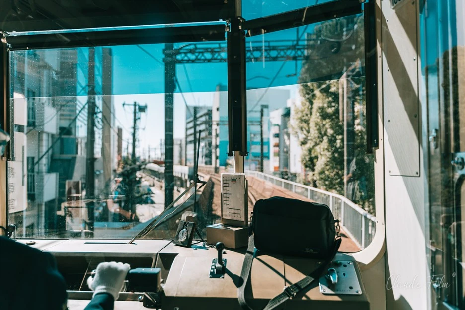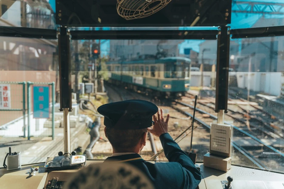 맨 앞 칸에 타면, 이렇게 기관사가 에노덴을 운전하는 모습도 지켜볼 수 있다.
