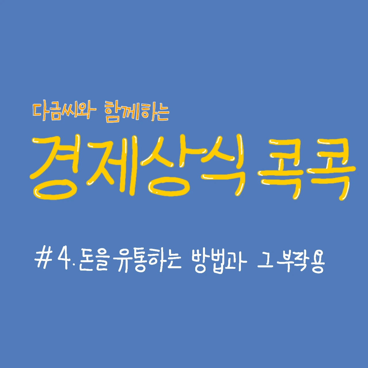 안녕하세요 쑥쑥이들! 4주 차 다금씨와 함께하는 경제상식 콕콕! 에 오신 것을 환영합니다. 오늘은 돈을 유통하는 방식과 이에 따른 부작용에 대하여 공부해 보는 시간을 가지도록 하겠습니다.