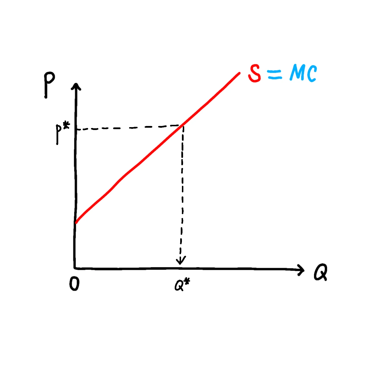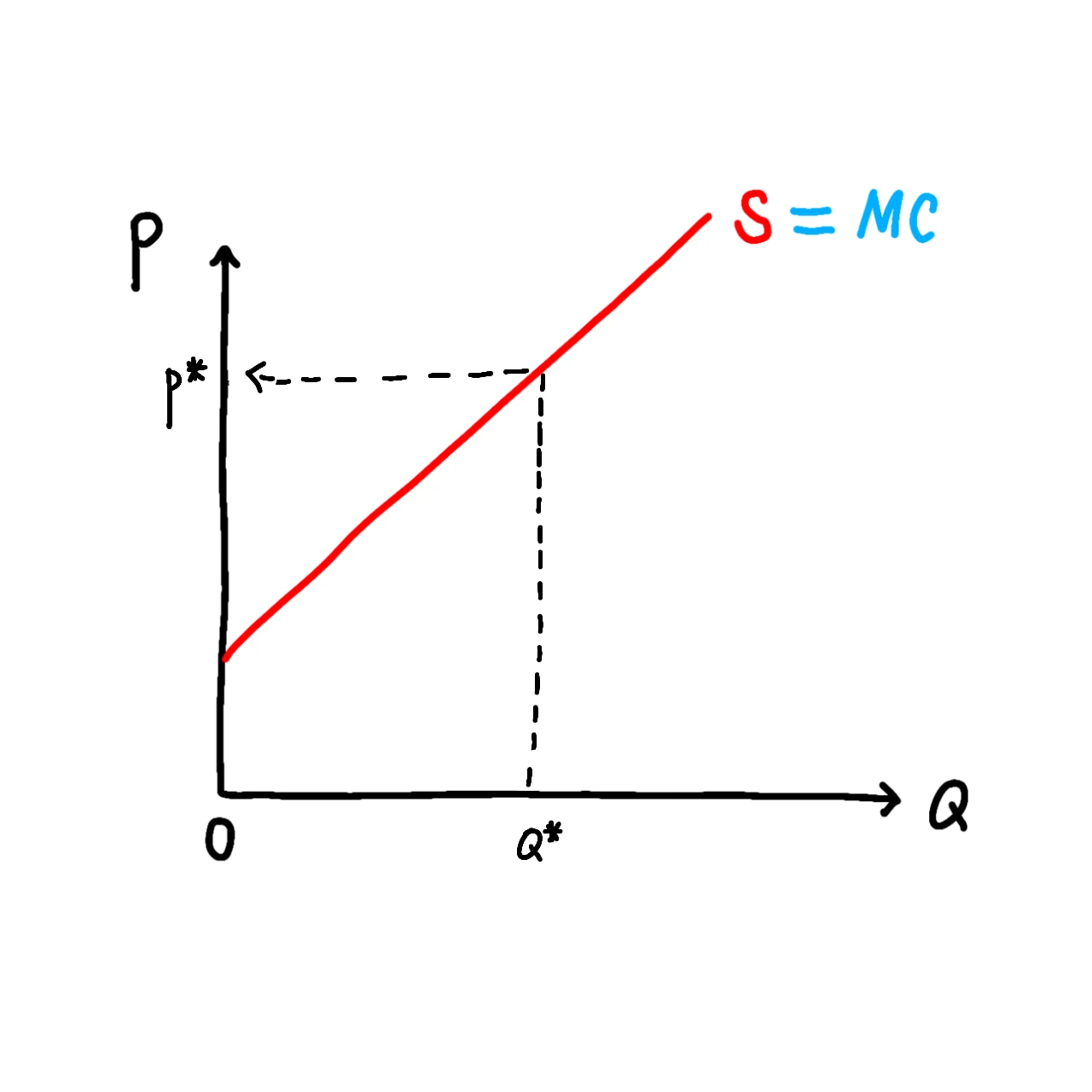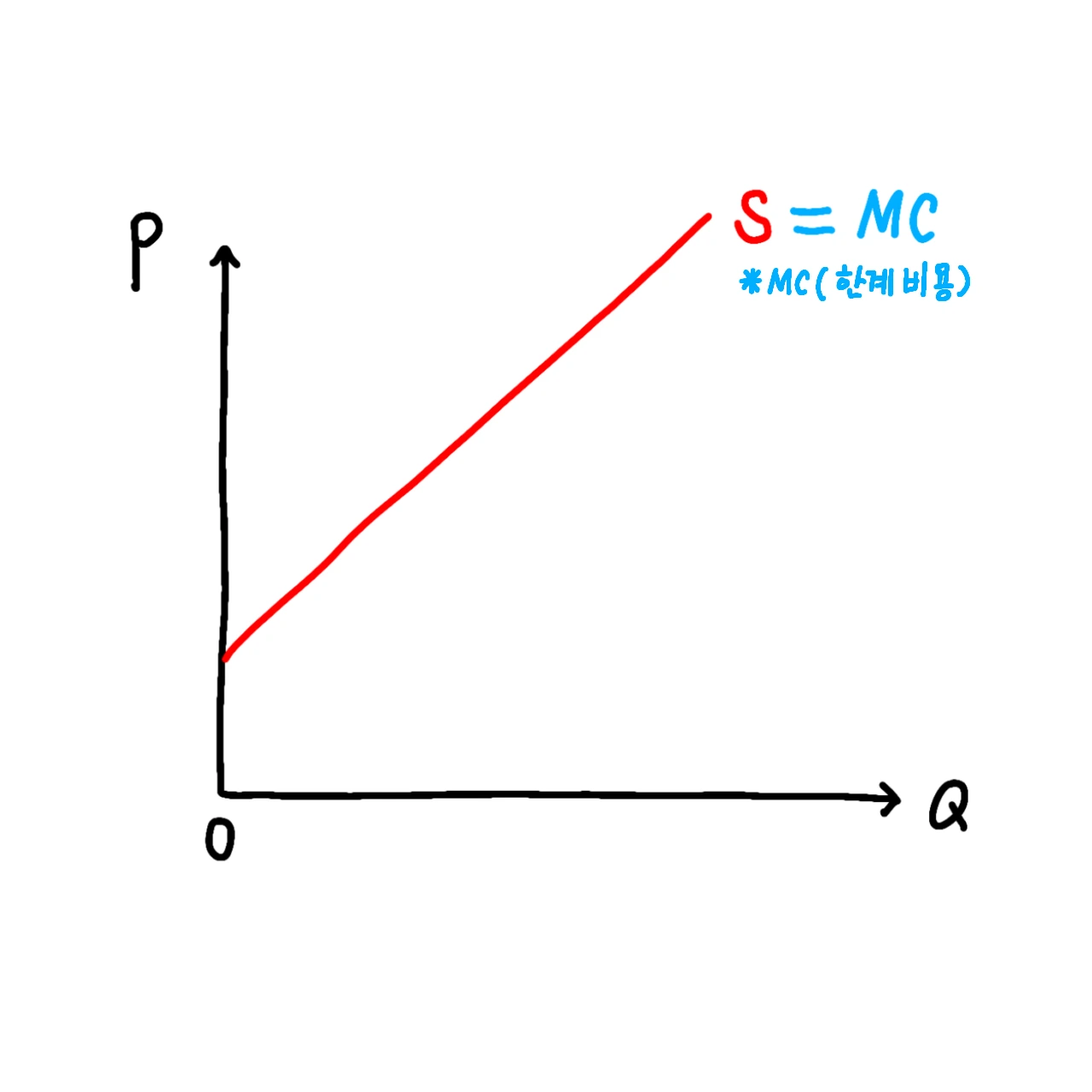 공급곡선은 ‘한계비용곡선’이라고도 불립니다. 여기서 한계비용이란, 제품 1단위를 추가적으로 생산하기 위하여 필요한 비용을 말하는데, 공급곡선을 통해 이러한 한계비용을 판단할 수 있기 때문에 한계비용곡선이라고도 불리는 것입니다.