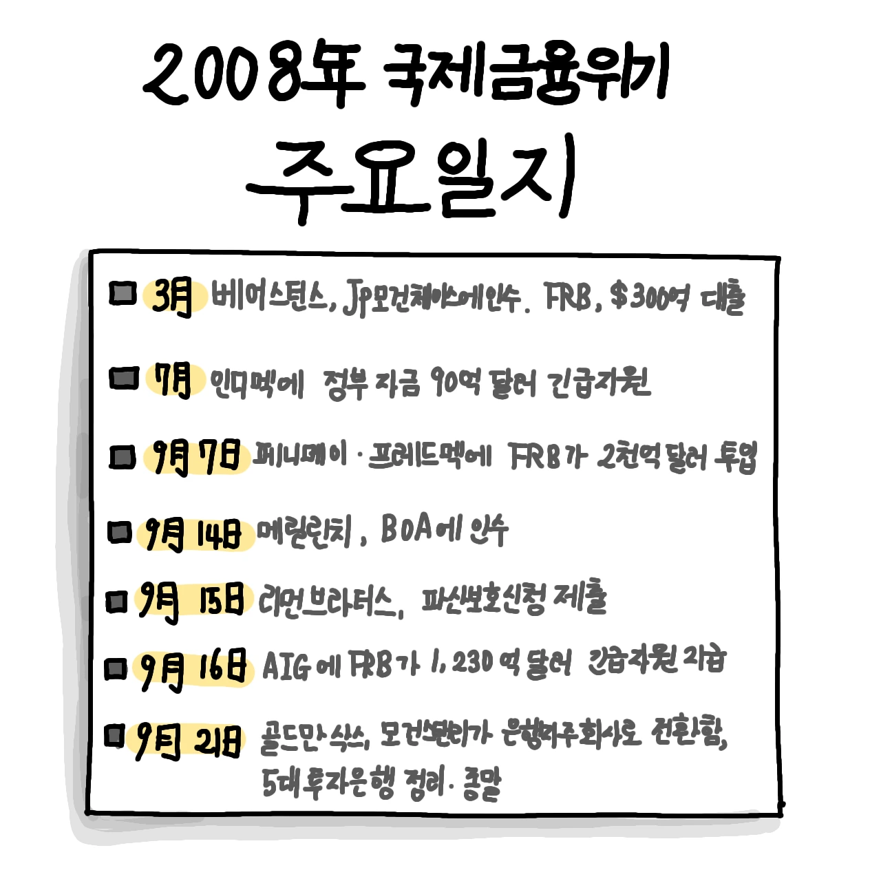 이것이 미국의 실물경제에 큰 타격을 주었으며, 이후 세계 경제시장에까지 타격을 주어 2008년의 세계금융위기까지 이어지게 된 것입니다.