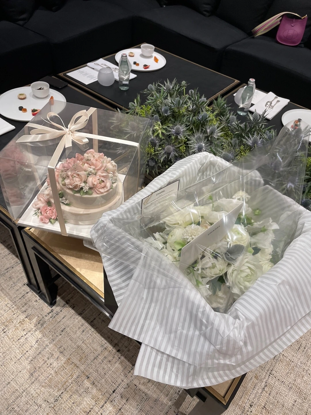 지인에게 파티의 초대자로 '선택받은' 나는 샤넬에 입장했다. 물론 줄 따윈 서지 않았고 매장에 들어서자 셀러들이 우리를 환영해주었다. 엘리베이터를 타고 올라가면서 나의 기대감은 극대화되었다. 화려하고 세련되게 꾸며진 단독룸으로 안내받고 미리 고급스럽게 세팅되어 있는 테이블 소파에 착석했다. 호텔 고급 레스토랑처럼 코스요리가 순서대로 쓰여있는 안내문이 있었고 그 옆에는 엄청나게 큰 꽃바구니도 보였다. 룸 안의 모든 게 신기했고 새로웠다. 식사를 하기 전 웰컴 드링크로 칵테일과 커피를 마시고 본격적인 식사가 시작되었다. 코스가 진행될 때마다 요리에 대해 소개받았고 맛은 뭐... 잘 느끼지 못했다. 사실 입 속에 뭐가 들어갔는지 잘 기억도 나지 않는다. 샤넬이라는 공간 자체가 주는 아우라와 느낌에 압도되었던 탓일까. 아마도 실감이 잘 안 났던 것 같다.