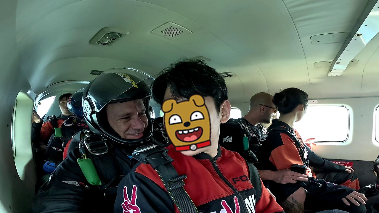 조금 뒤 갑자기 비행기 문이 열렸다. 비행기 문이 열리고 나니 갑자기 분위기가 완전히 바뀌었다. 문이 닫혀있을 때는 사실 그냥 일반 여객기를 타는 것과 느낌이 크게 다르지 않았다. 하지만 문이 열리는 순간 온도, 소리, 공기, 이 모든 것이 바뀌었다. 4,400m 상공의 찬 공기가 안으로 매섭게 몰아쳤다. 사람이 말하는 소리는 거의 들리지 않아 소리를 쳐야 들릴까 말까 했다. 내가 여기서 뛰어내린다는 사실이 확 실감이 났다.