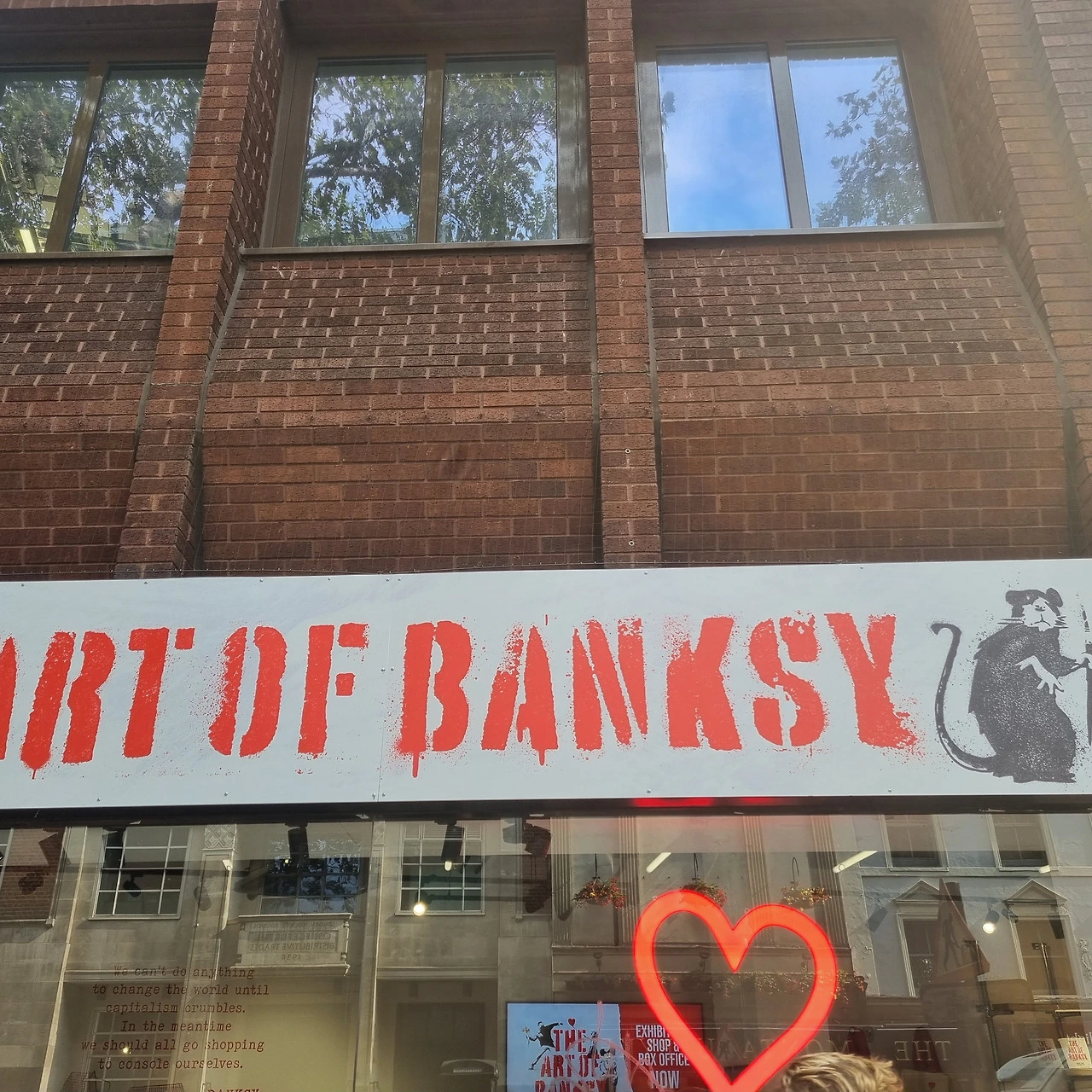 이게 왠 Banksy숍인가. 들어가 봤더니 내부엔 입장료 받고 관람하는 전시장이 있고 그와 관련된 기념품을 파는 곳이었다. 기념이라고 10파운드 가격의 머그 컵을 사들고 나오며 Banksy는 벽화로 봐야 진짜지 생각하며 서둘러 튜브를 탔다.