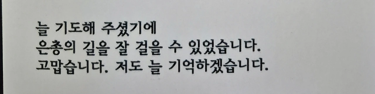 카톨릭 서울대교구도 매년 두차례 사제 인사가 있는데 8월이 발령이다. 현재 매주 다니는 성당은 약 8년째인데, 주임 신부님을 세분 뵈었다. 현 주임신부님은 코로나 한창 무렵으로 제대로된 미사가 어려웠던 2021년 8월 말에 부임하셨는데, 올해 9월 2일부로 이임이 아니라 퇴임 즉, 사제는 퇴임이 없으므로 성사전담사제로 다른 길을 걷게 되신다. 8월 31일 마지막 주일 미사를 드리고 신자들이 길게 줄을 지어 악수하고 작별 인사를 나눈다. 주임신부님의 강론이 좋다고 일주일에 한 번 새벽 미사 반주를 했던 와이프는 눈물을 보이기도 했다. 8월 말일, 올해도 넉 달 밖에 남지 않은 가을 문턱 앞에서 주임신부와 작별 인사를 했다. 인사하는 주임신부님은 웃으며 덤덤하게 신자들과 손을 맞잡으셨다. 새 임지가 아닌 현업에서 떠난다는 마음이 어떠할까 하는 생각을 해 보았다. 이곳 신자들을 기억하며 기도하겠다는 말씀이 과연 빡빡한 미사 일정에서 해방되어 여유롭게 기억하겠다는 뜻일까 아님 서운함을 표현한 것일까 모르겠지만 난 1초도 되지 않게 신부님과 대면 작별을 하고 성당을 빠져나왔다. 내 손에는 신부님의 작별 메시지가 있다. '늘 기도해 주시어 은총이 있는 길을 걸을 수 있었습니다." 마지막까지 신부님은 강복을 받았다.