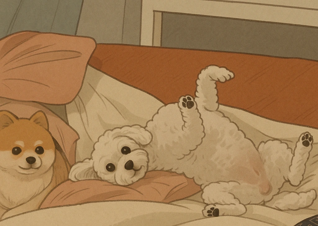 다른 한 마리는 배를 훤히 내보인 채 드러눕는다.