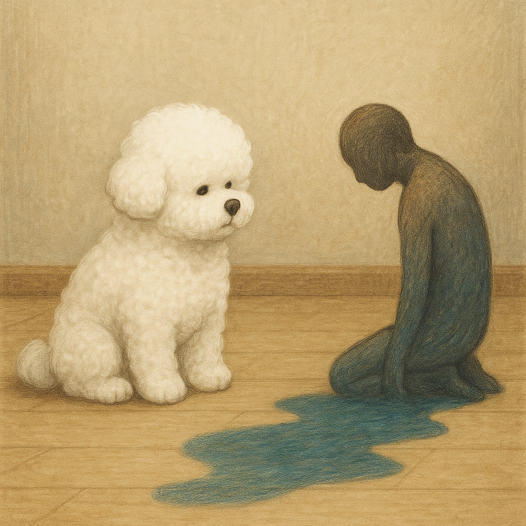 강아지를 꼭 끌어안고 작게 두근대는 심장 소리를 들어봐.