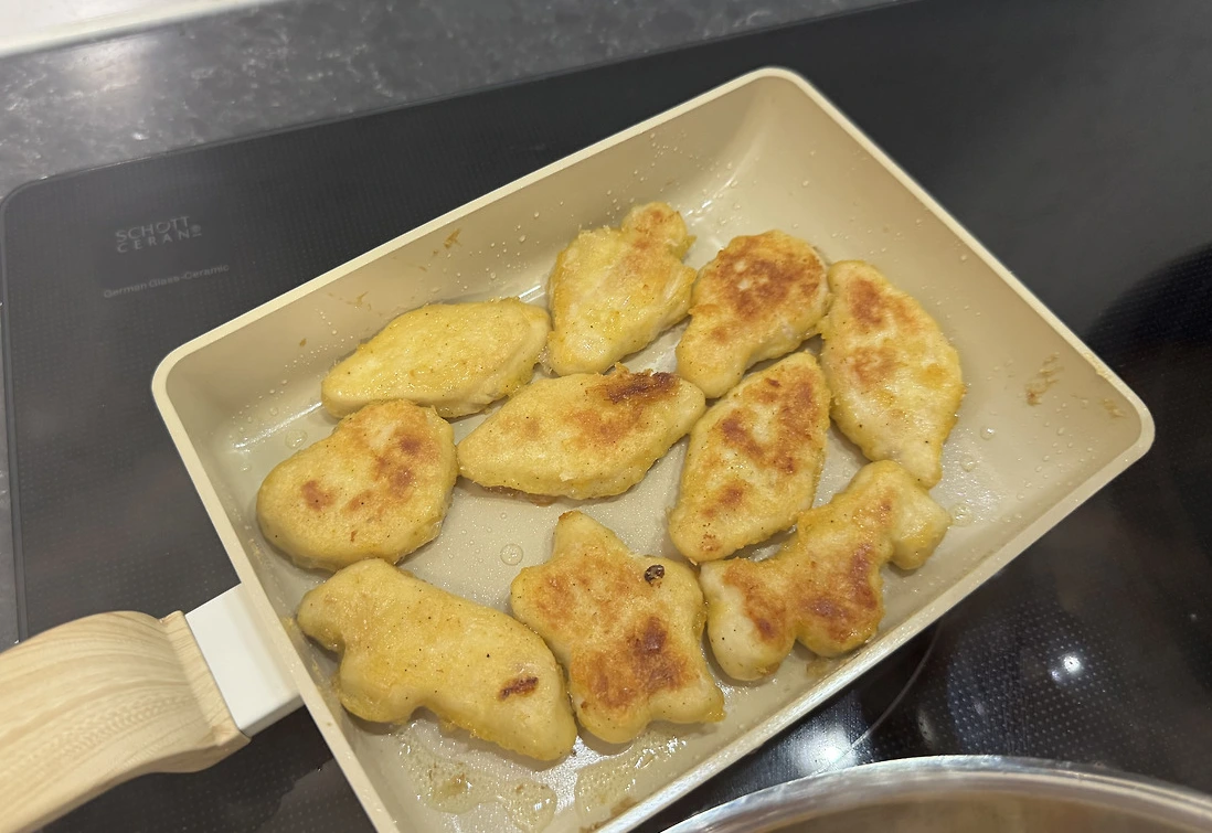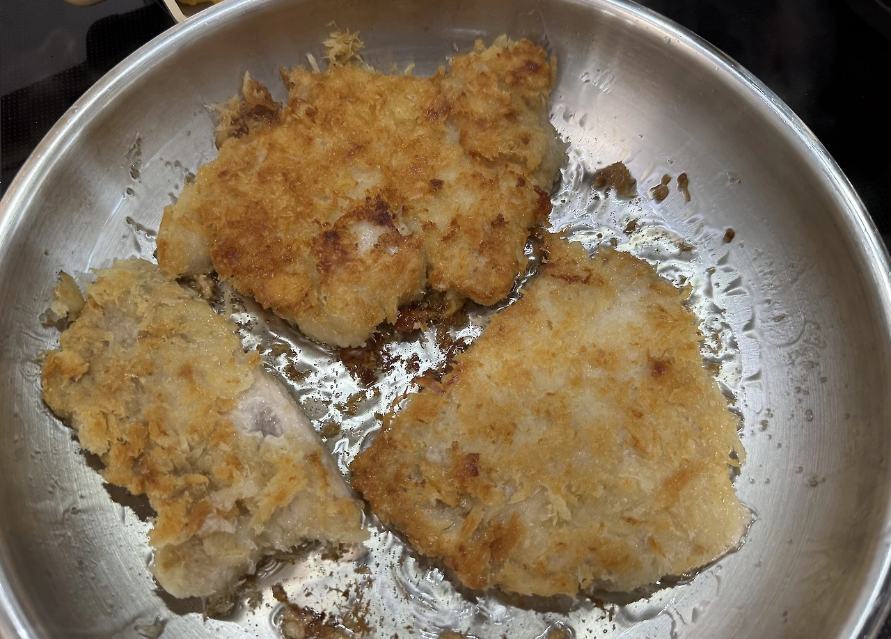 모처럼 남편이 반차를 썼으니 돈가스 가게에 가서 먹는 방법도 있고 아니면 돈가스를 튀겨주는 곳에서 튀겨진 돈가스를 사가서 집에서 먹는 방법도 있겠지요. 하지만 냉동실에 정육점 돈가스와 치킨너겟이 있다는 걸 생각했어요.