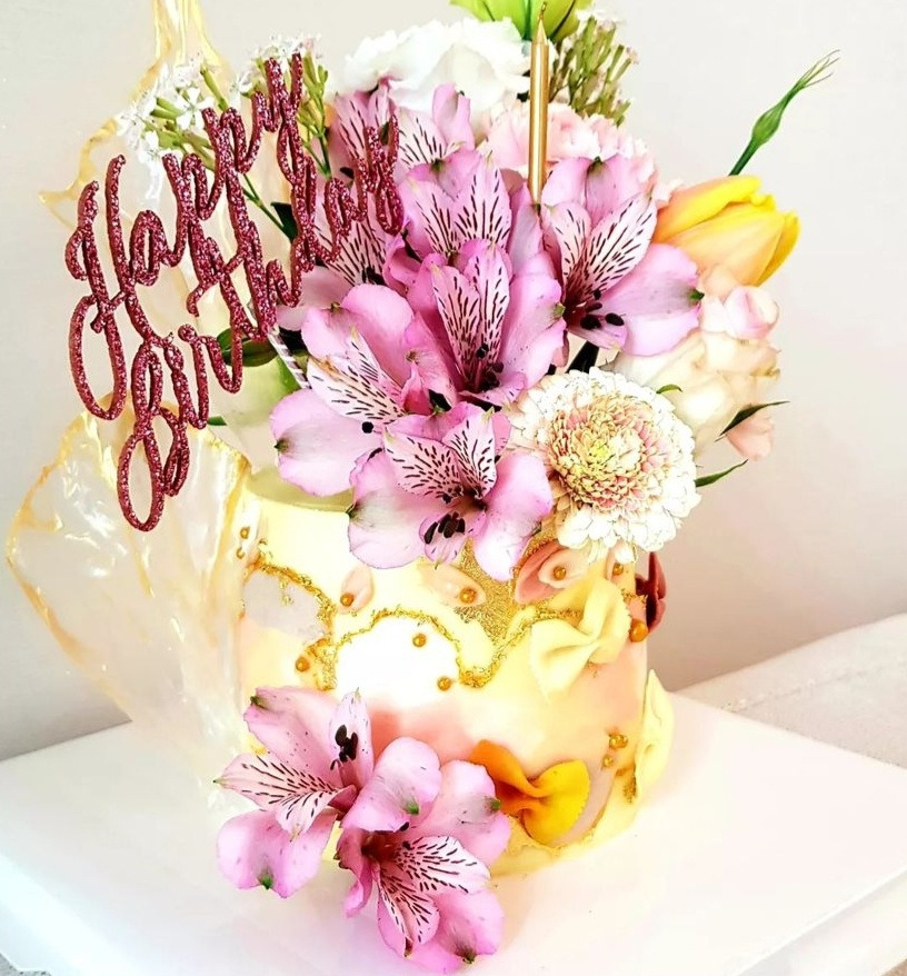 나의 생일에는 라이스페이퍼에 색을 칠하여 전자레인지에 돌려 추상표현의 날개가 달인 수제케이크를 만들었다.
