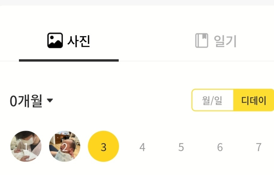 달력처럼 탄생일 부터 매일 매일의 사진이 올라가 있는 앱이였다.