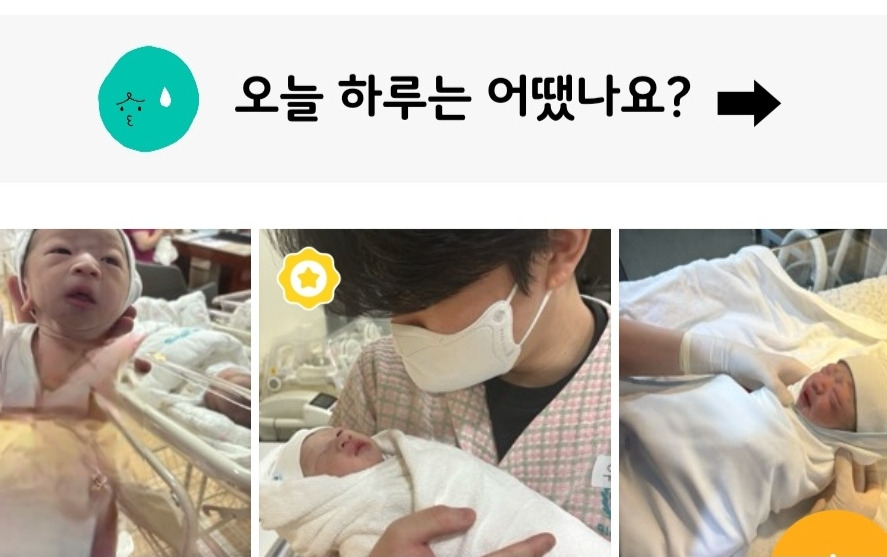 '5월 9일 오후 23시 21분 2.6kgㆍ 50cm의 건강한 아가가 출생했습니다'
