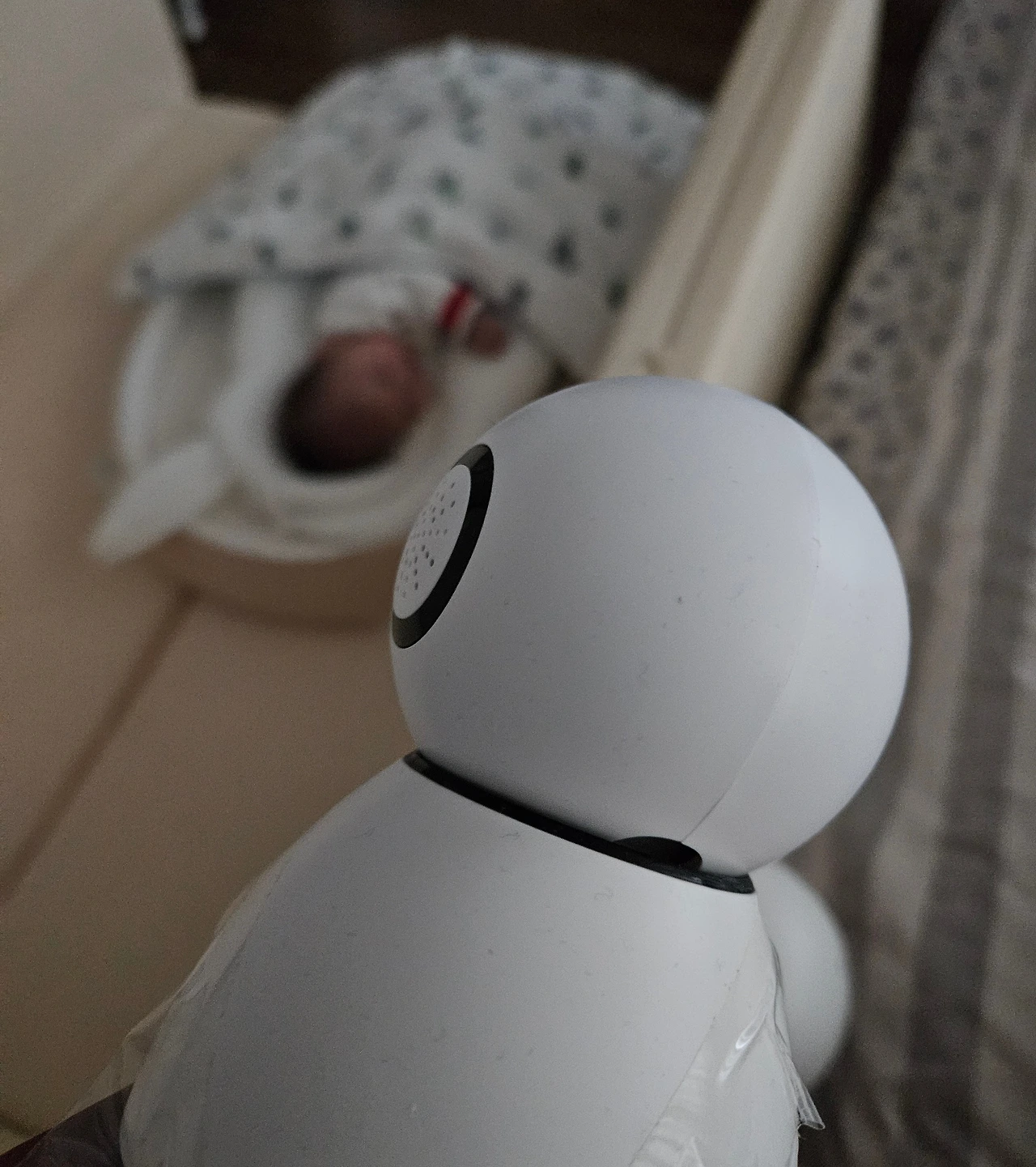 우리는 아가 자는 모습이 잘 보이도록 아가침대가 잘 보이는 위치에 홈카메라를 달았다.