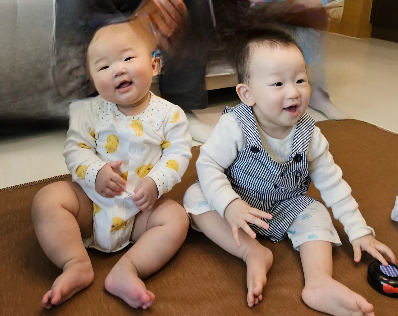 두명의손자가 태어난지 11개월과 6개월이 되었다.
