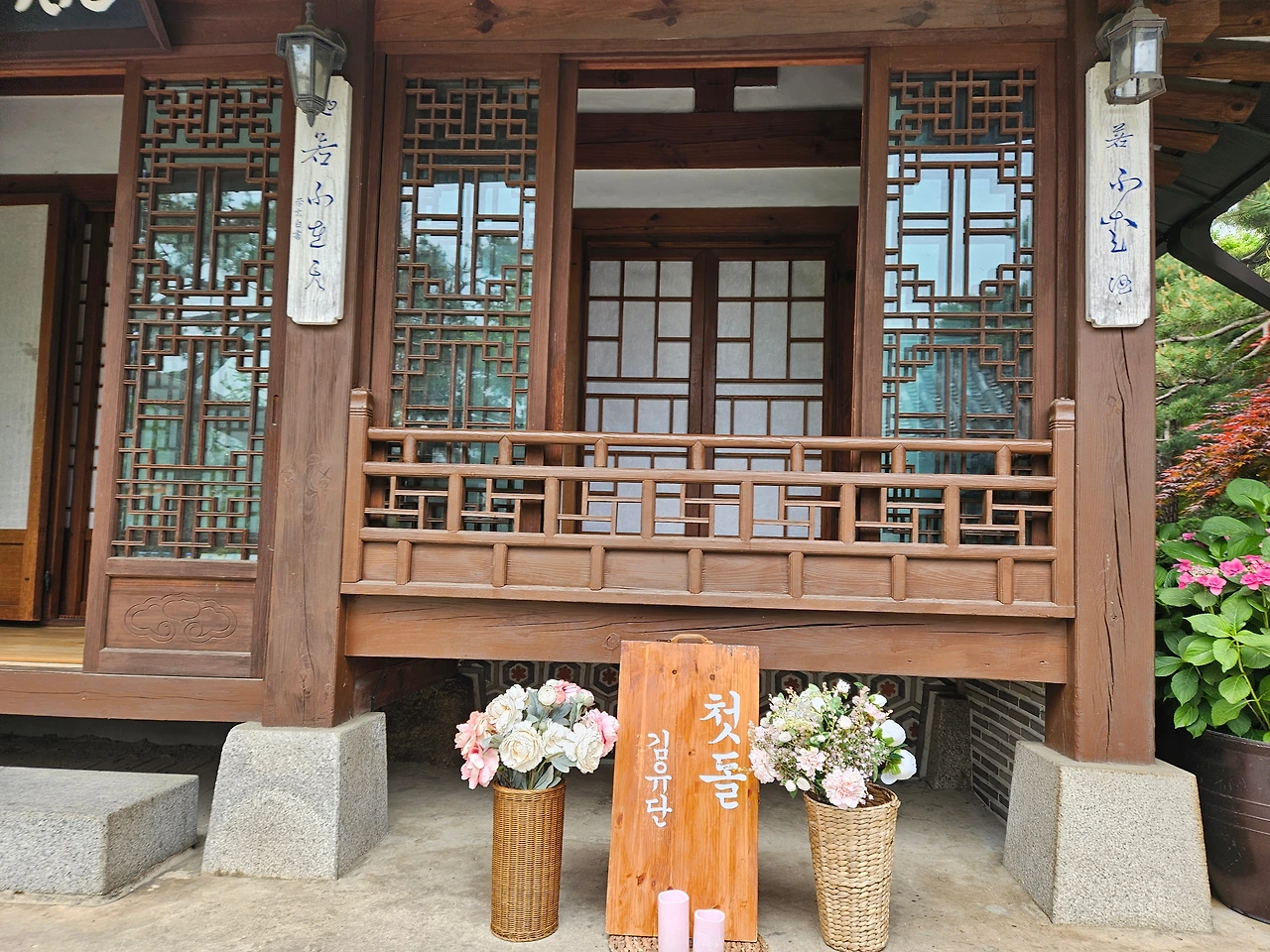 푸른 초록빛 마당을 가진 한옥에서 예쁜 사진을 찍은 후에 실내로 들어왔다.
