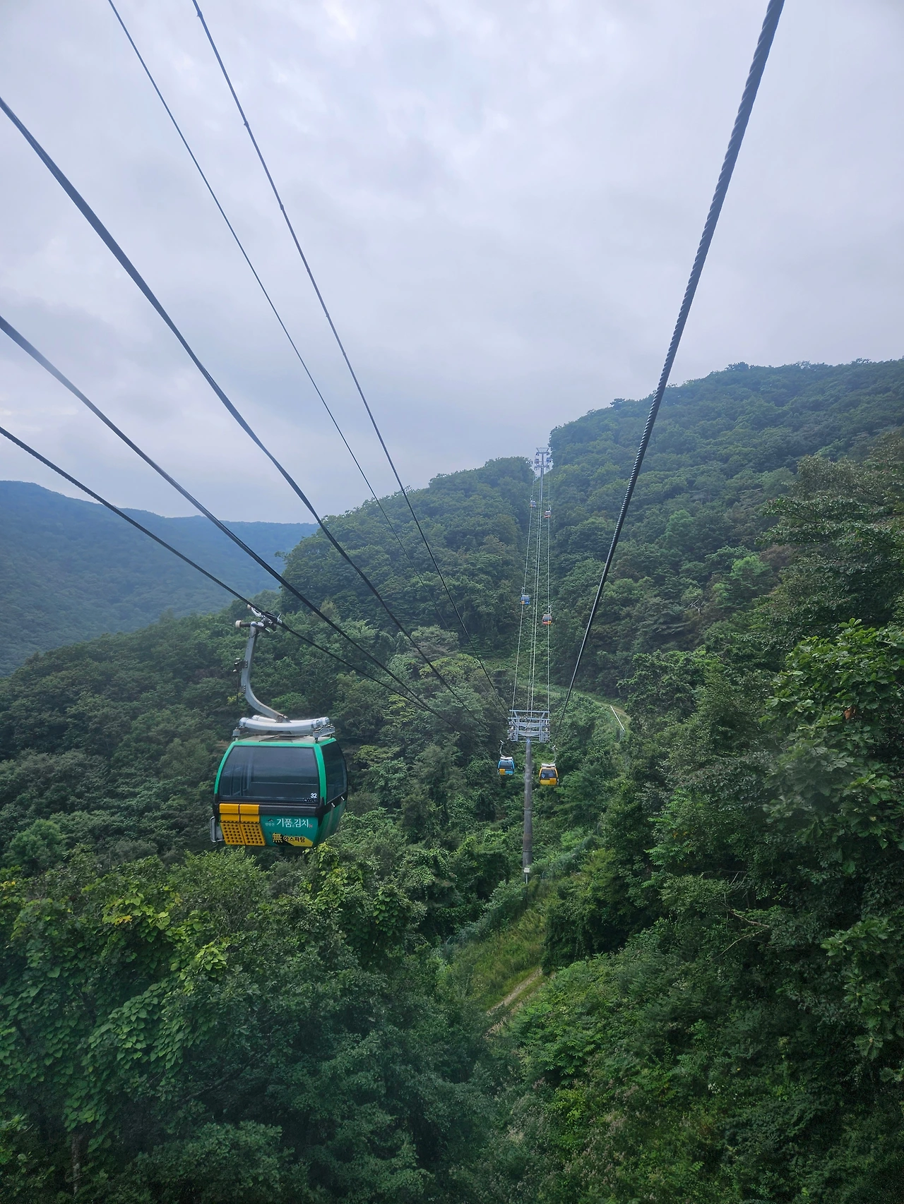 발왕산의 케이블카는 여러 개의 언덕을 오르락내리락하는 굉장히 긴 코스였다.