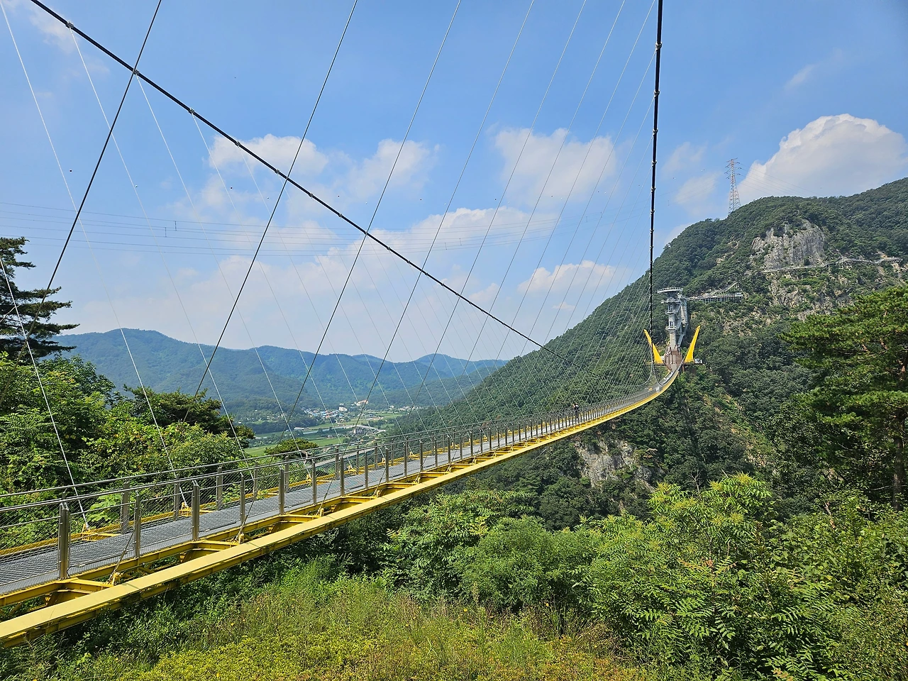 최근에 만들어진 노란색의 울렁 다리는 길이가 한국 최대일 것 같이 길다.
