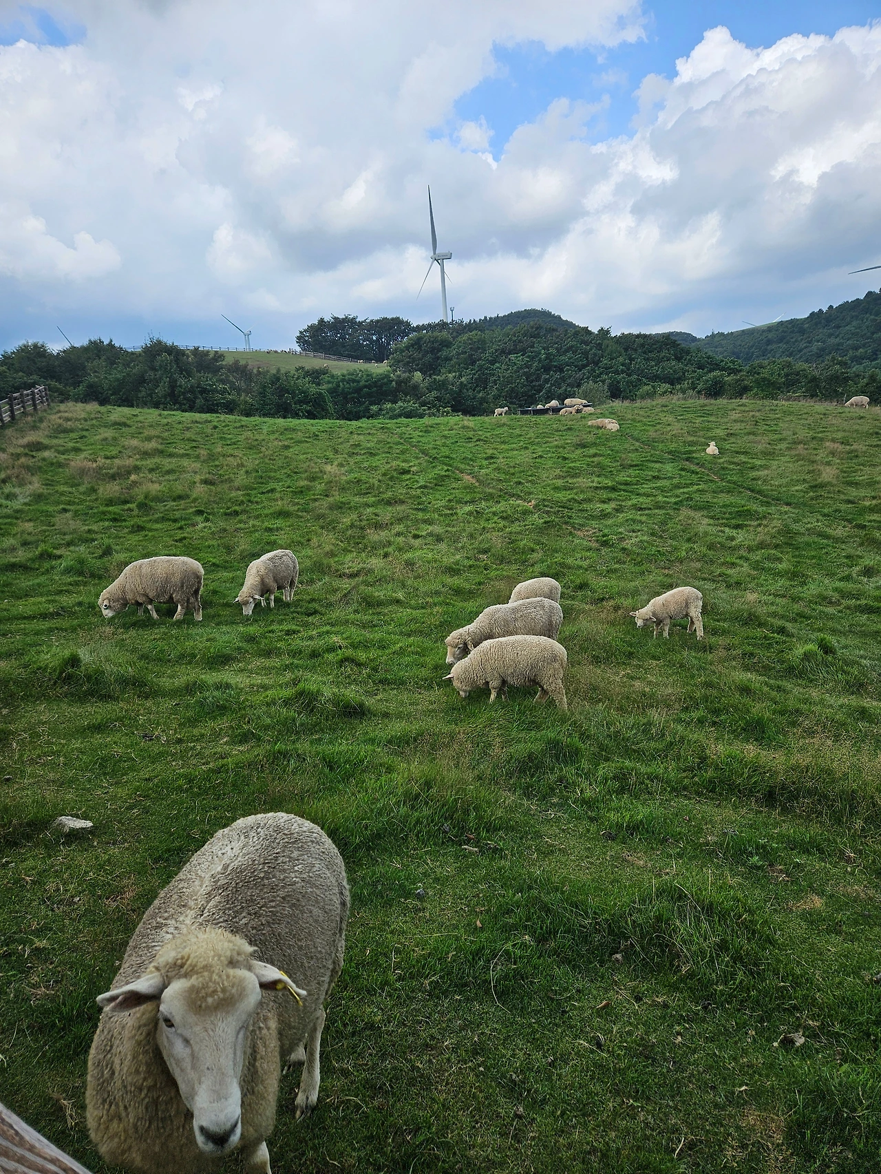 대관령 삼양라운드힐의 넓은 목장 위에 풍력발전기와 앙떼들의 모습은 장관이며 평화로웠다.