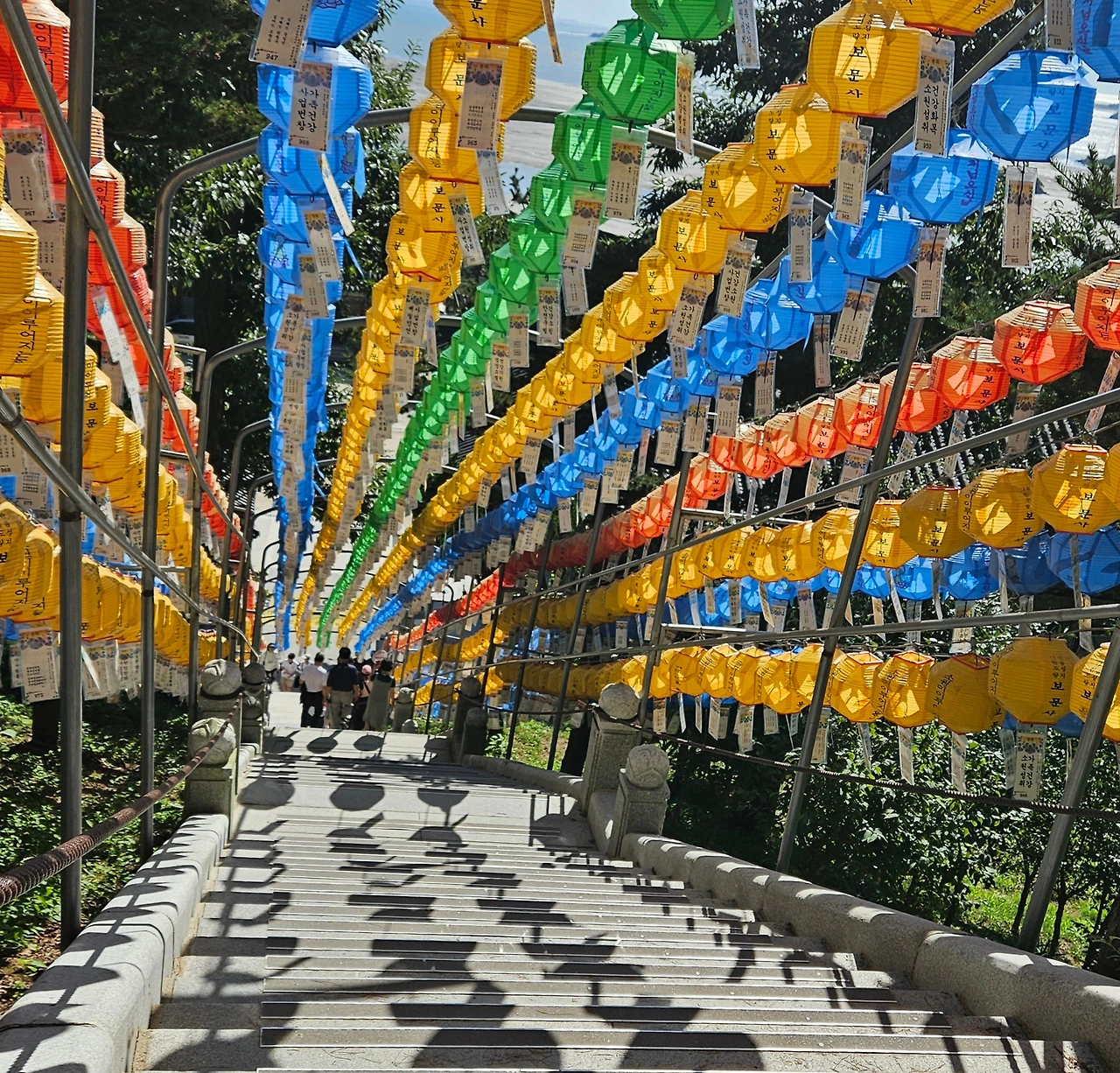 계단 양쪽으로는 등이 화려하게 달려있고 태양빛은 뜨거워서 헉헉 거리며 올라갔다