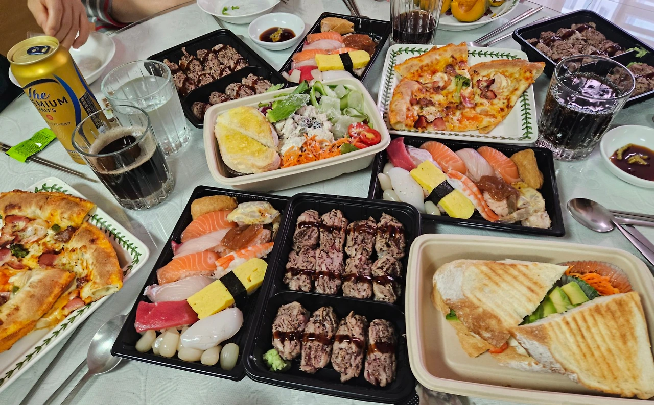 이번 내 생일에도 모든 음식은 배달음식으로 하였다.