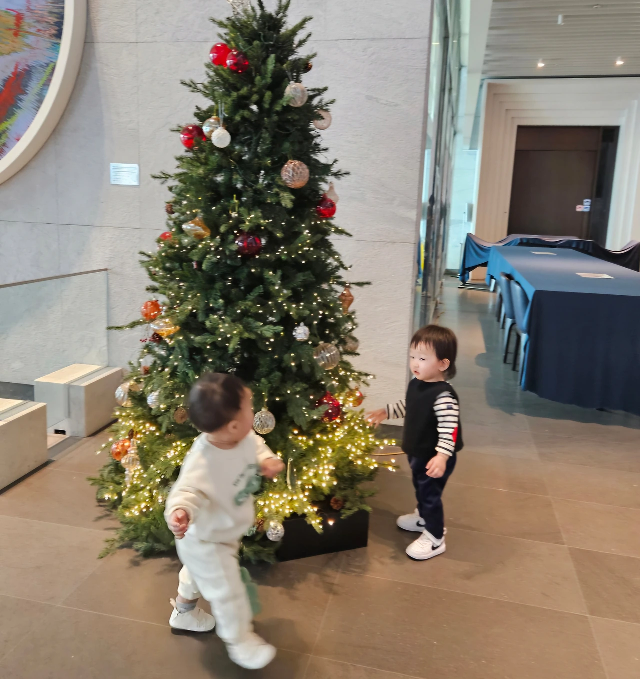 첫째 손자는 트리옆에 예쁘게 서있는데 둘째 손자는 계속 움직이고 돌아다녀서 결국 둘의 사진을 찍지 못했다.