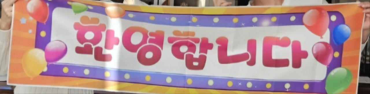 우선 지난번 쿠팡에서 주문한 '환영합니다' 플래카드를 찾아냈다. 그리고 딸이 스스로 눈을 뜰 때까지 조용히 대기했다. 딸은 고맙게도 해가 중천에 뜨기 전에 일어나서 거실로 걸어 나왔다. 나는 플래카드를 펼쳐 들고 환영의 인사를 건넸다. (나의 장난기도 한 몫했다)