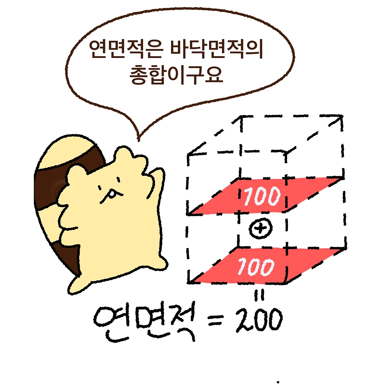 용적률을 이해하기 위해서는 우선 연면적을 알아야합니다. 연면적의 사전적 정의는 '대지에 들어선 하나의 건축물의 바닥면적의 합계'입니다. 쉽게 말해서 건물 바닥면적의 총합이라고 할 수 있죠. 바닥이 100m2인 5층 건물이 있다면 연면적은 100 X 5 = 500m2가 됩니다. 참쉽죠?