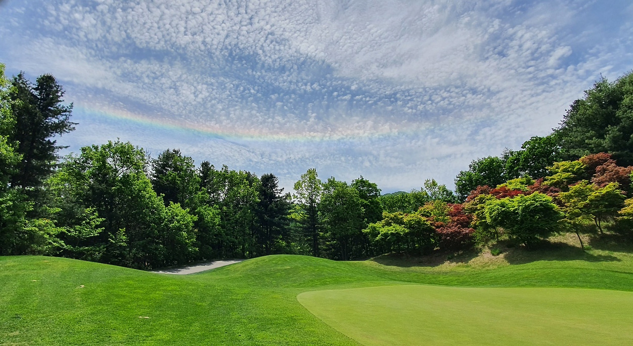 오르막 지형의 블라인드 그린에서 큼지막한 샷이글이었다.