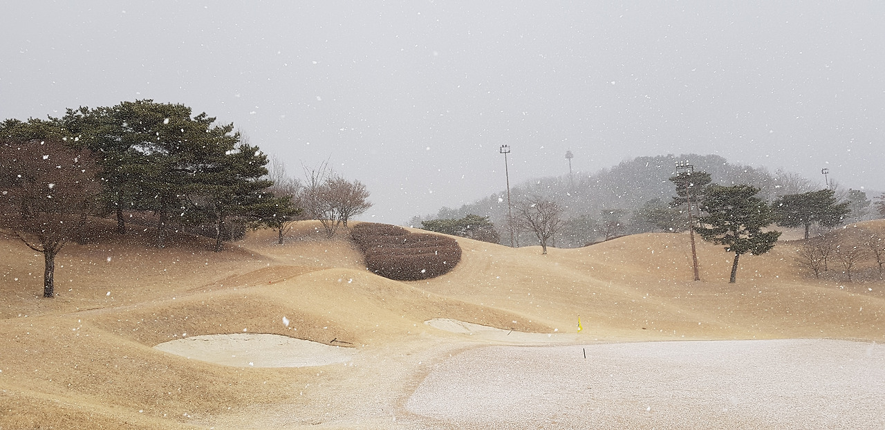 페어웨이는 은빛 설원으로, 그린은 초록 마당으로 초동(初冬)과 만춘(晚春)이 동화된 모습이다. 은빛에서 초록으로, 초동에서 만춘이라. 원색의 조화와 시간의 초월이 공존한다. 스코어에 집착하는 코스에서 스토리가 만개한 작품무대로 넘나든다. 라운드 후엔 은빛 스토리로 웃음꽃을 이어가지 않을 수 없다.