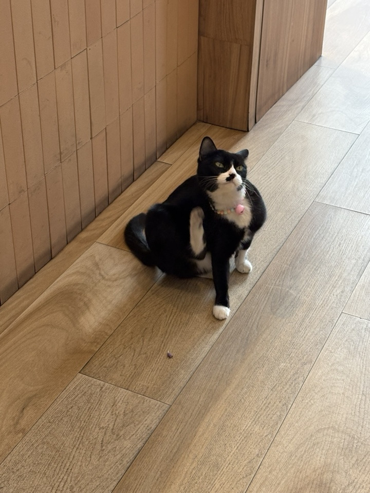 우리가 좋아하는 카페에도 역시 크리스마스분위기가 한창이었다. 숙소에서 걸어서 5분 거리의 카페였다. 그 카페의 코코넛케이크가 정말 맛있어서, 우리는 거의 하루에 한 번씩 갔었다. 라떼와 함께 코코넛케이크를 먹고 있다가 운이 좋다면 고양이가 다가와주는 그런 카페였다. 턱시도를 멋지게 차려입은 정중한 고양이였다. 우리는 그 고양이를 코코넛케이크만큼 좋아했다.