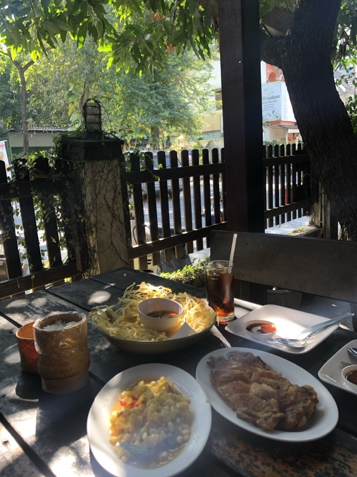 굽네치킨과 비슷한 듯 다른 닭구이와 찰밥은 어딘가 익숙한 맛이었다. 겉은 바삭하고 안은 부드러운 닭구이의 담백한 맛이 쫀득한 찹쌀밥과 잘 어울렸다. 친구와 나는 식당에 가서 밥을 시킬때는 거의 일반 밥이 아닌 찰밥으로 시켰는데, 그럴 때 마다 ‘스티키라이스 맛이 있지요? 많이 먹으면 많이 살쪄요!’ 라고 했던 가이드님의 경고가 생각나긴 했지만 그럼에도 우리는 찰밥의 쫄깃한 식감을 여행 마지막 날 까지 포기하지 못했다.
