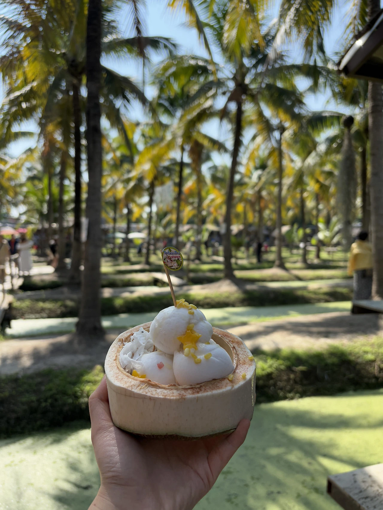코코넛 마켓에 처음 도착한 우리는 치앙마이에서 열린 그 작은 축제에 감탄하며 눈에 보이는 모든 것을 신기해했다. 생소한 간식이 신기했고, 봐왔던 것과 조금 다른 모양새의 과일이 신기했다. 늘어선 야자수가 신기했고, 초록색 늪과 그곳에 떠 있는 코코넛마저 신기했다.
