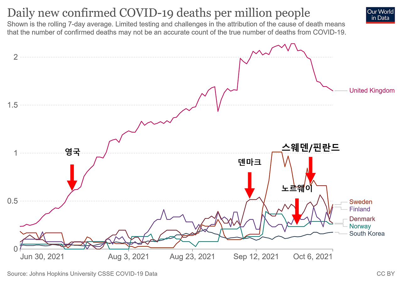 물론, 위드코로나가 진행되어 확진자 규모가 커지면 비례해서 사망자 규모 또한 커질 수밖에 없습니다. 코로나19의 위험이 과장된 점은 있지만, 그렇다고 전혀 위험하지 않은 질병도 아니기 때문입니다.