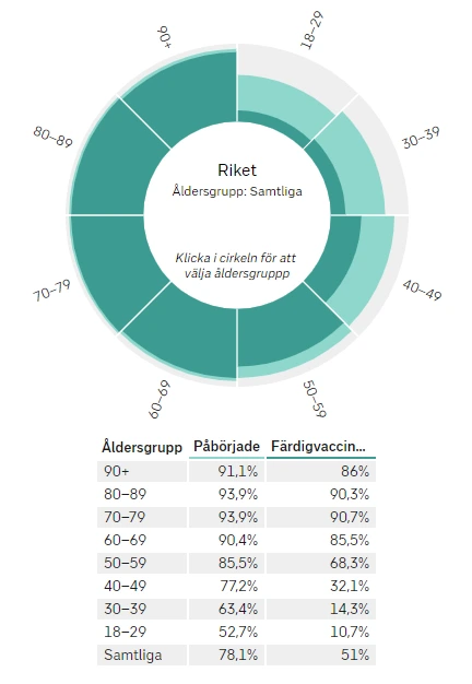 (좌) 미국의 연령별 백신접종률 (출처: CDC), (우) 스웨덴의 연령별 백신접종률 (출처: svt)