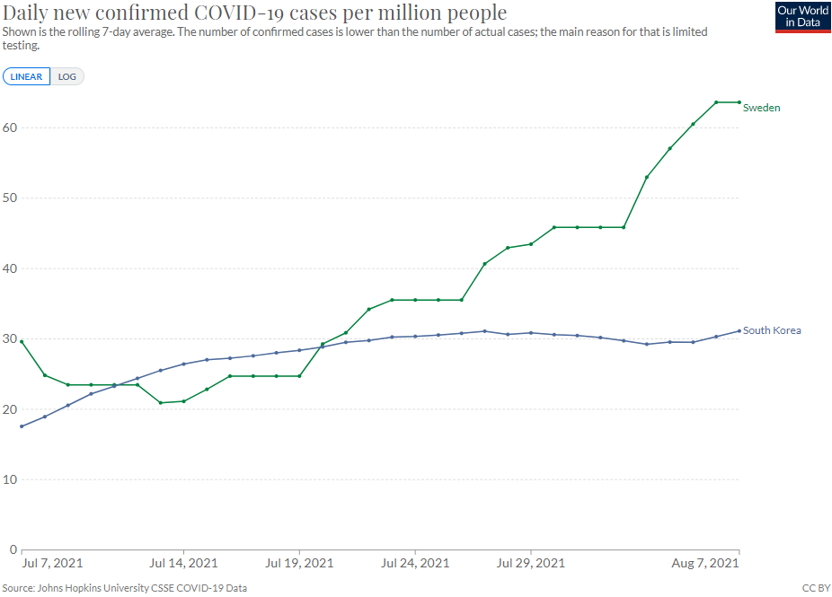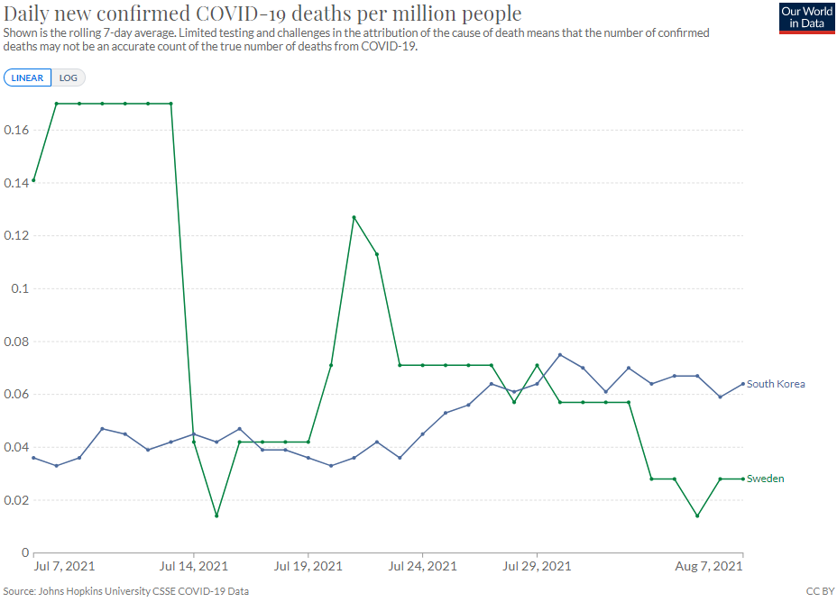 가령, 스웨덴은 지금 코로나바이러스 사망자가 매우 안정적으로 관리되고 있으며,