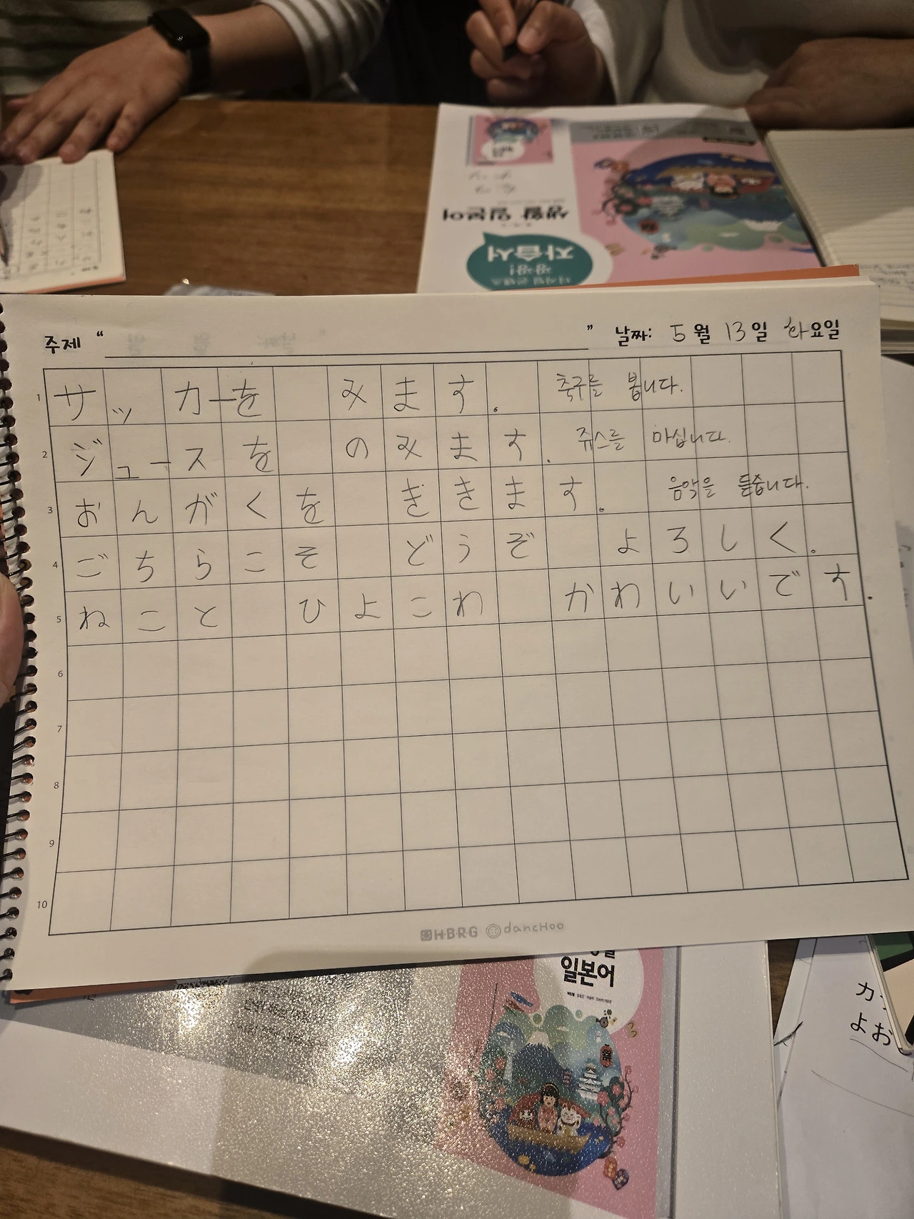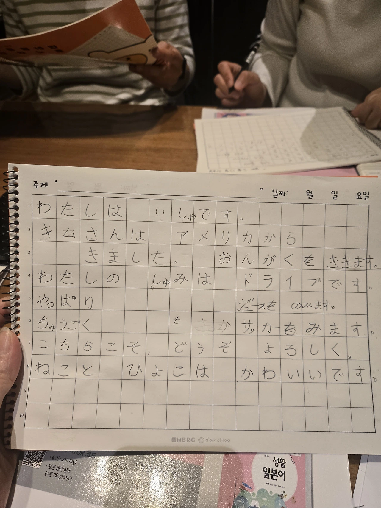 약속 장소에 먼저 도착한 나는 숙제였던 ‘탁음·촉음·요음으로 이루어진 단어와 문장 10개씩’ 문제를 곱씹으며 적고 있었다.