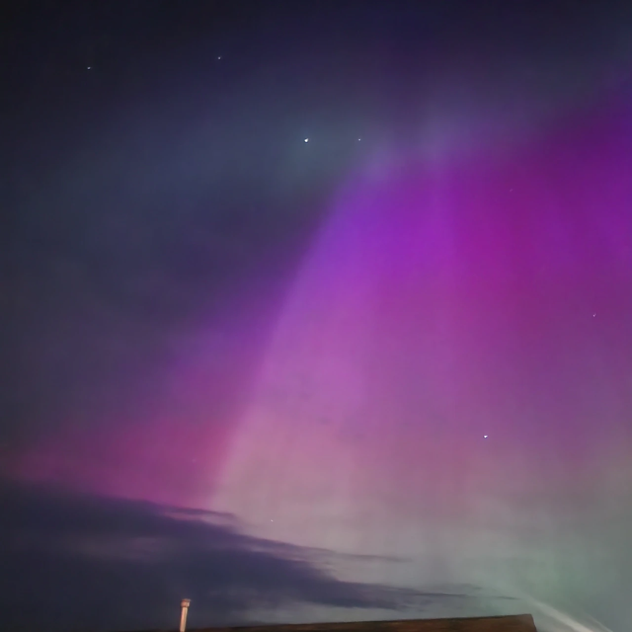 #흔하게 볼 수 없는 붉은색 오로라가 집 위로, 내 머리 위로 쏟아지고 있었다