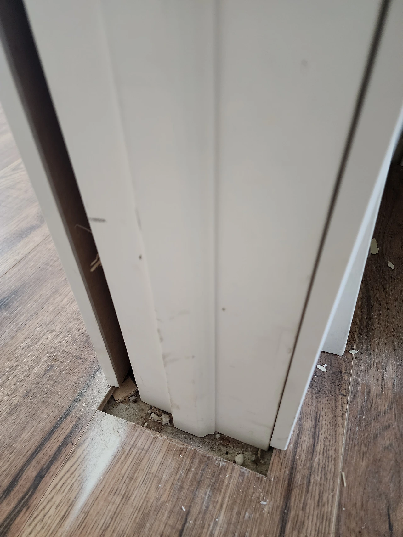 존의 아이들이 몇 개월 거주하고 이사를 나가기로 결정한 날, 우리는 집 내부를 보고 경악하지 않을 수 없었다. 마감이 안된 타일은 기본이고, 모든 집안의 문들이 규격이 제대로 맞지 않은 채 못에 의지하여 겨우 걸려 있었으며, 천정마감, 바닥 마감도 대충 눈가림으로 덮어두었고, 클로젯 문들은 모두 사라지고 없었다. 테이핑 없이 페인트 칠을 했는지 모든 창문과 조명은 페인트로 덕지덕지 지저분하게 덮여 있었고, 부엌 카운터 탑에 떨어진 페인트는 제대로 지우지 않고 에폭시로 덮어 두어 음식 할 마음이 싹 사라지도록 만드는 지저분한 부엌이 되어있었다. 게다가 케비넷 한 짝은 도대체 어디로 도망갔단 말인가!