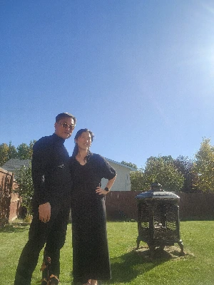 뒷마당에 나와 아빠와 함께 폼을 잡아본다. 지금 시간 오전 11시.