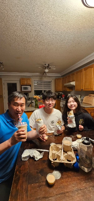 손자와 운동을 다녀오신다더니, 뜬금없이 큼지막한 돈에어와 아이스 카푸치노 파티가 벌어졌다. 평소 같았으면 절대 용납할 수 없는 밤 11시 야식타임이지만, 할아버지가 손주들에게 한턱 쏘시는 거라 모두가 기분 좋게 야식을 즐겼다. 매일 새벽이면 잠 못 이루시는 아빠가 오늘은 푹 주무실 것 같다.
