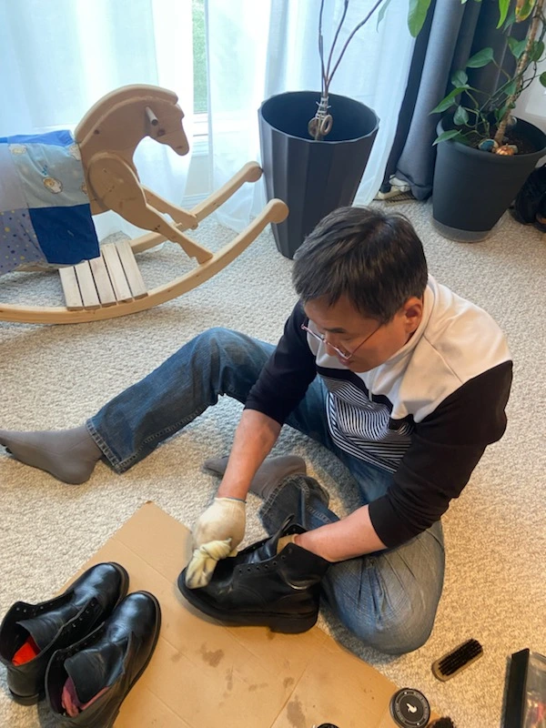 수요일은 아이들이 카뎃에 가는 날이다. 수요일만 되면 군복에 각을 잡고 군화에 광을 낸다고 정신이 없는 날이기도 하다. 쪼그리고 앉아서 군화에 광을 내는 손주들의 모습을 보고 역시나 아빠가 나섰다.