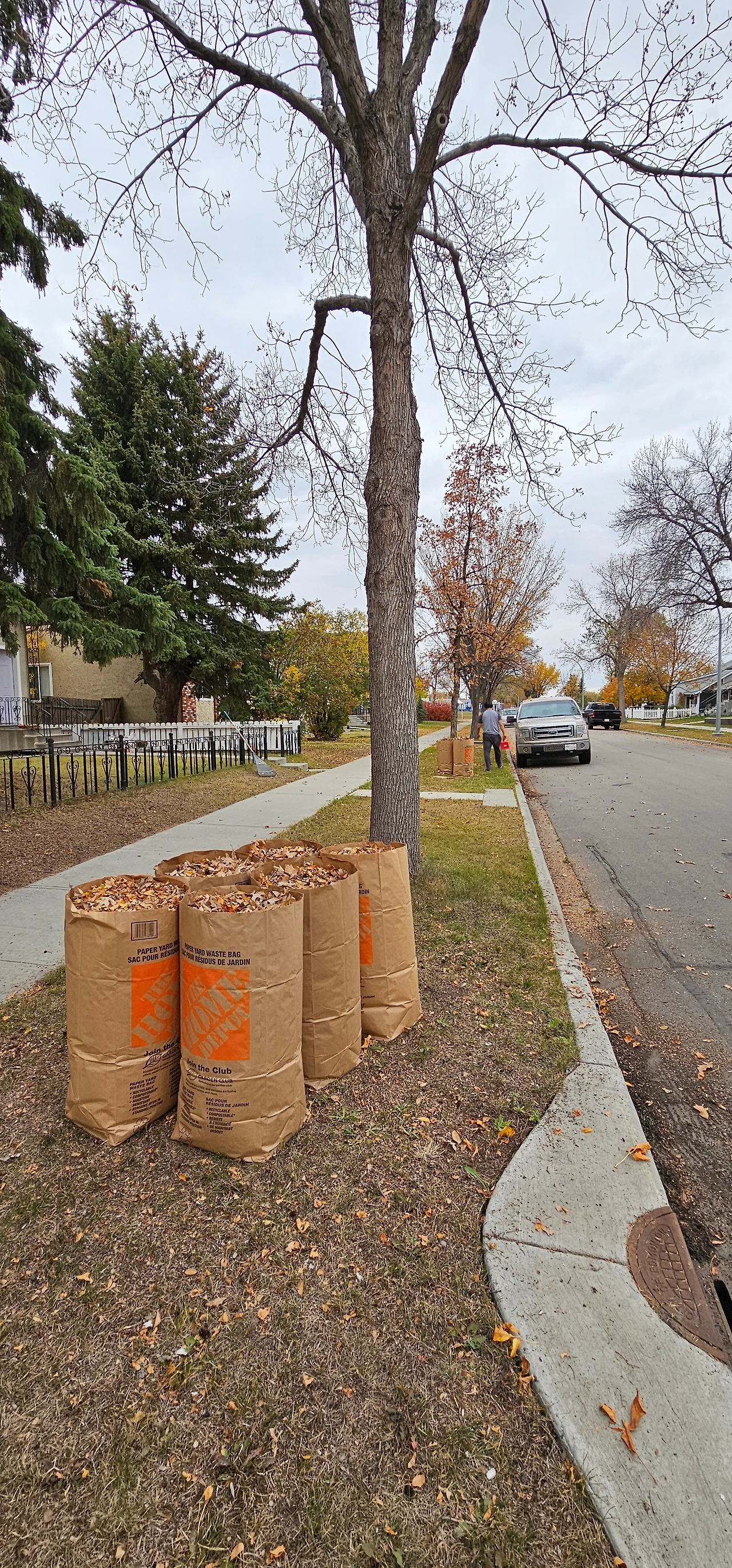 나라면 낙엽들을 그냥 놔둘 텐데... 아빠는 낙엽과의 전쟁을 선포하신 듯 밤사이 떨어진 낙엽을 또 청소하셨다. 아빠의 애쓴 손길이 헛되지 않게 신랑이 봉투를 사다가 탐스럽게(?) 담아 놓았다. 도대체 몇 개가 나온 건지 사진만 보아도 입이 떡 벌어진다.