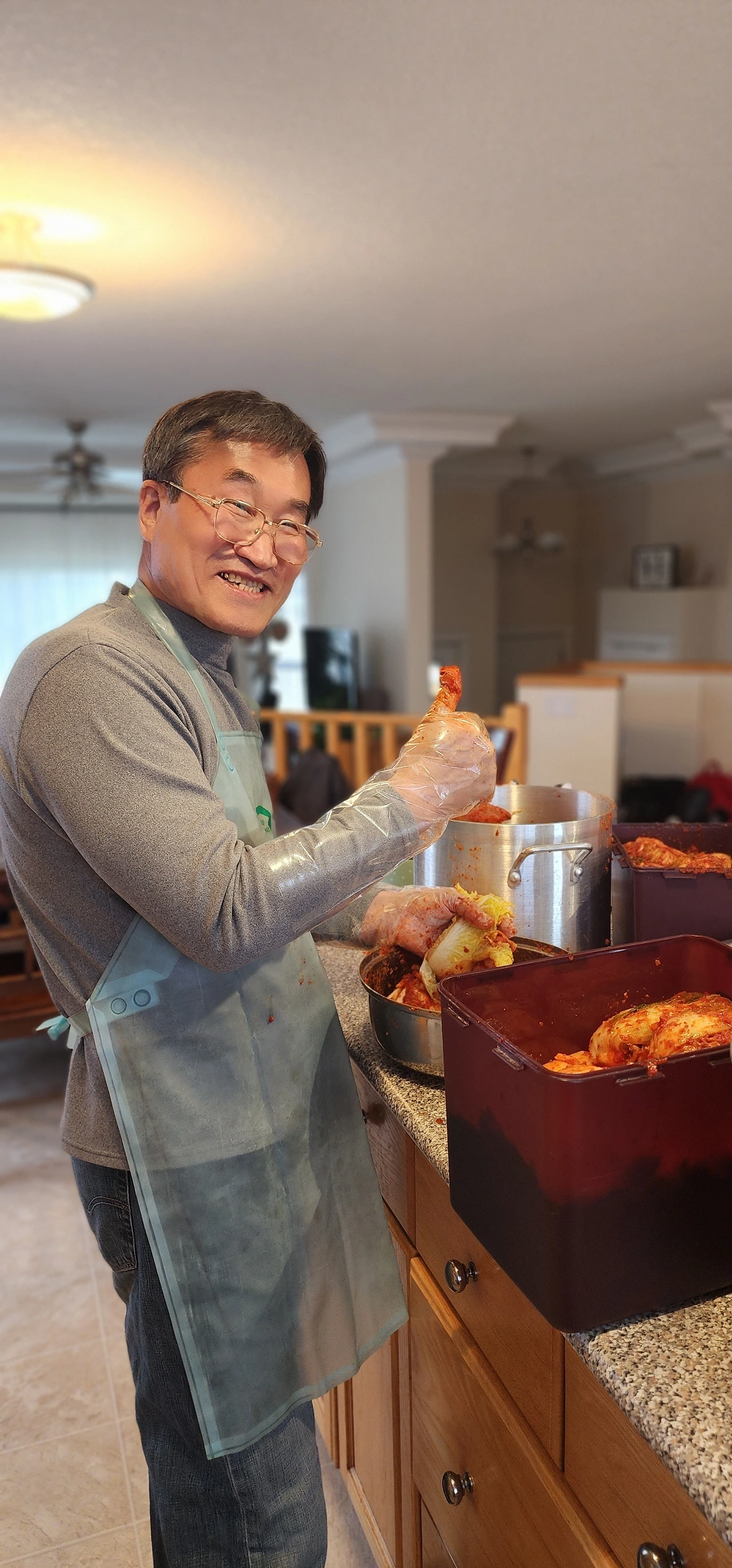 역시 요리에도 도구빨이다. 집에 양념을 버무릴 대야(?)가 없으니 샐러드 그릇부터 시작해서 전골냄비까지 집안에 그릇이라는 그릇들은 모두 다 출동했다. 엄마가 김장하실 때마다 일등 보조사였다며 자신감을 보이셨던 아빠는 이번에 직접 김장을 지휘하셨다. 뭔가 투박한 손놀림이지만 배춧잎 한잎 한잎이 아빠의 정성으로 옷 입혀졌다. 영하 50도까지도 떨어지는 알버타 추운 겨울을 김장김치 덕분에 든든하게 보낼 수 있을 것 같다. 김치만 냉장고에 있어도 마음이 든든한 이 마음 누가 이해할 수 있으랴!