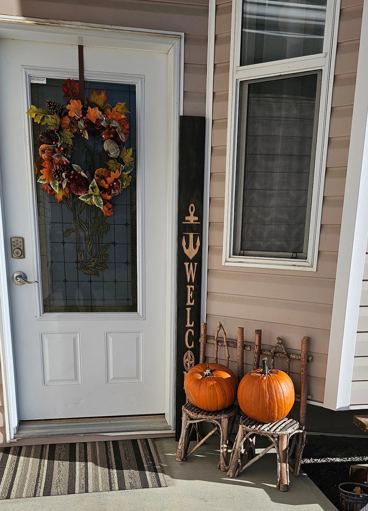 할로윈 행사로 아이들과 아빠와 함께 잭 오 랜턴을 만들고 싶었다. 매년 해왔던 작은 이벤트 이기도 하고 아빠께도 새롭고 흥미로운 시간이 될 것 같았다. 머리만 한 크기의 큰 호박이 3-4불이면 쉽게 살 수 있었는데, 게다가 마트마다 차고 넘쳤던 그 호박들이 다 어디로 간 건가? 타운에 마트를 다 뒤져봐도 손바닥 만한 호박도 구입할 수도 없었다. 다행히 Ford대리점에서 할로윈 행사를 진행하고 남은 호박 두 덩이를 무료로 받아올 수 있었다. 문 앞에 놓아둔 노란 호박 덕분에 집이 더 환해졌다.