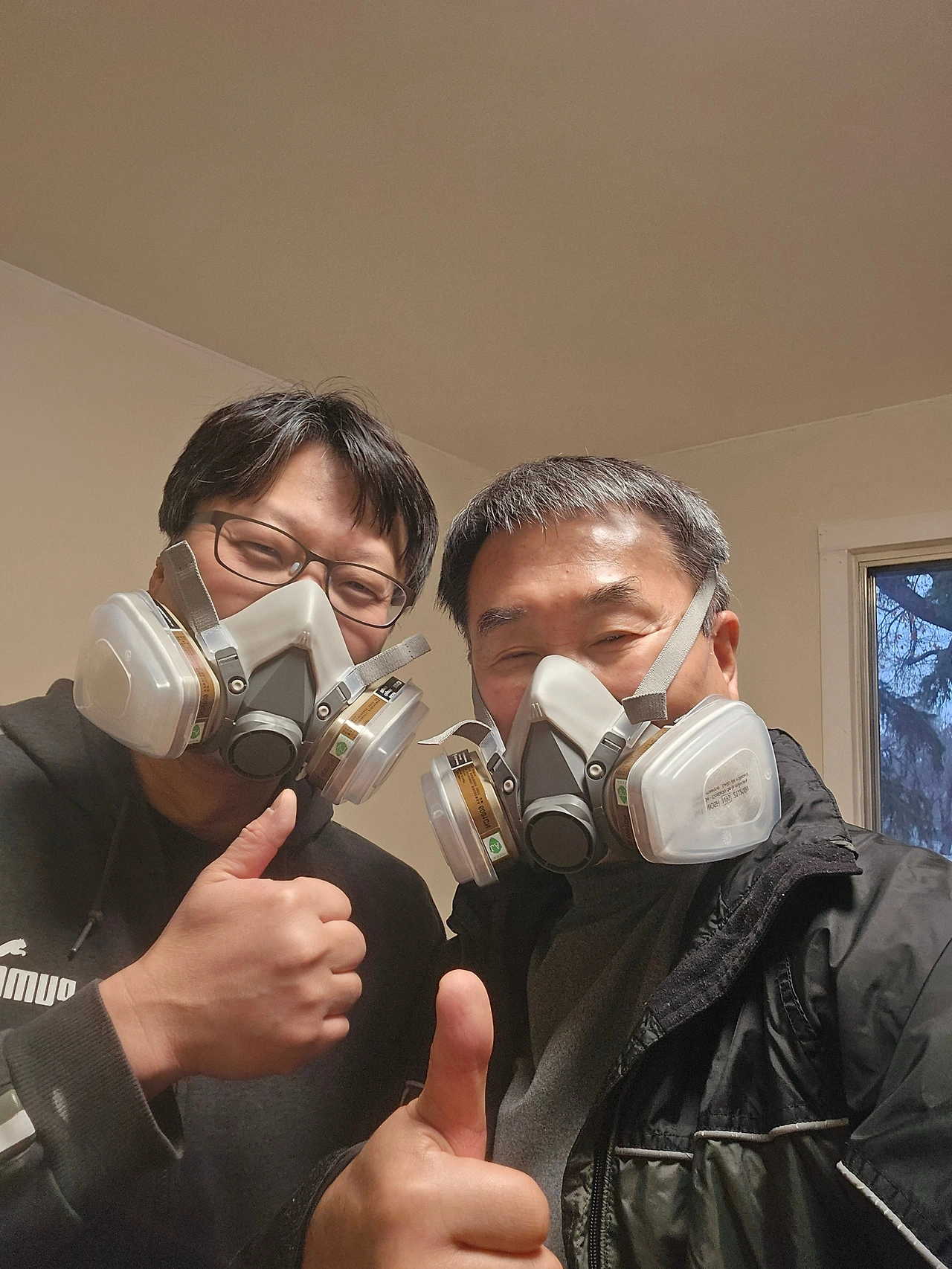 아마존에서 구입한 특수 마스크가 아주 큰일을 한 하루였다. 결국 오늘도 계획만으로 끝났던 페인트 작업이었지만 두 분의 표정이 밝은 걸 보니 샌딩작업이 아주 만족스러우셨나 보다. 오늘도 애쓴 장인어른과 배짱이 팀에게 감사의 박수를 보낸다.