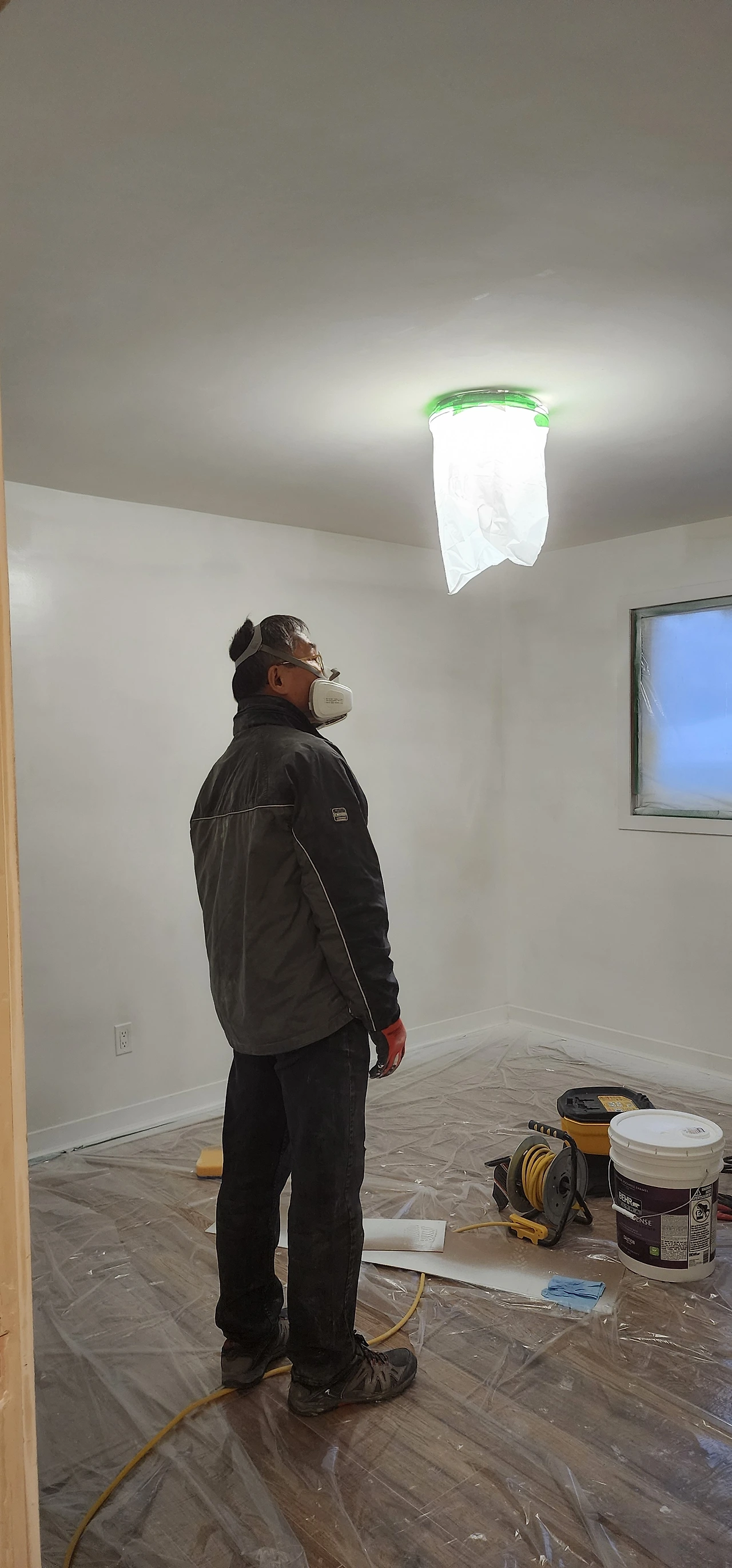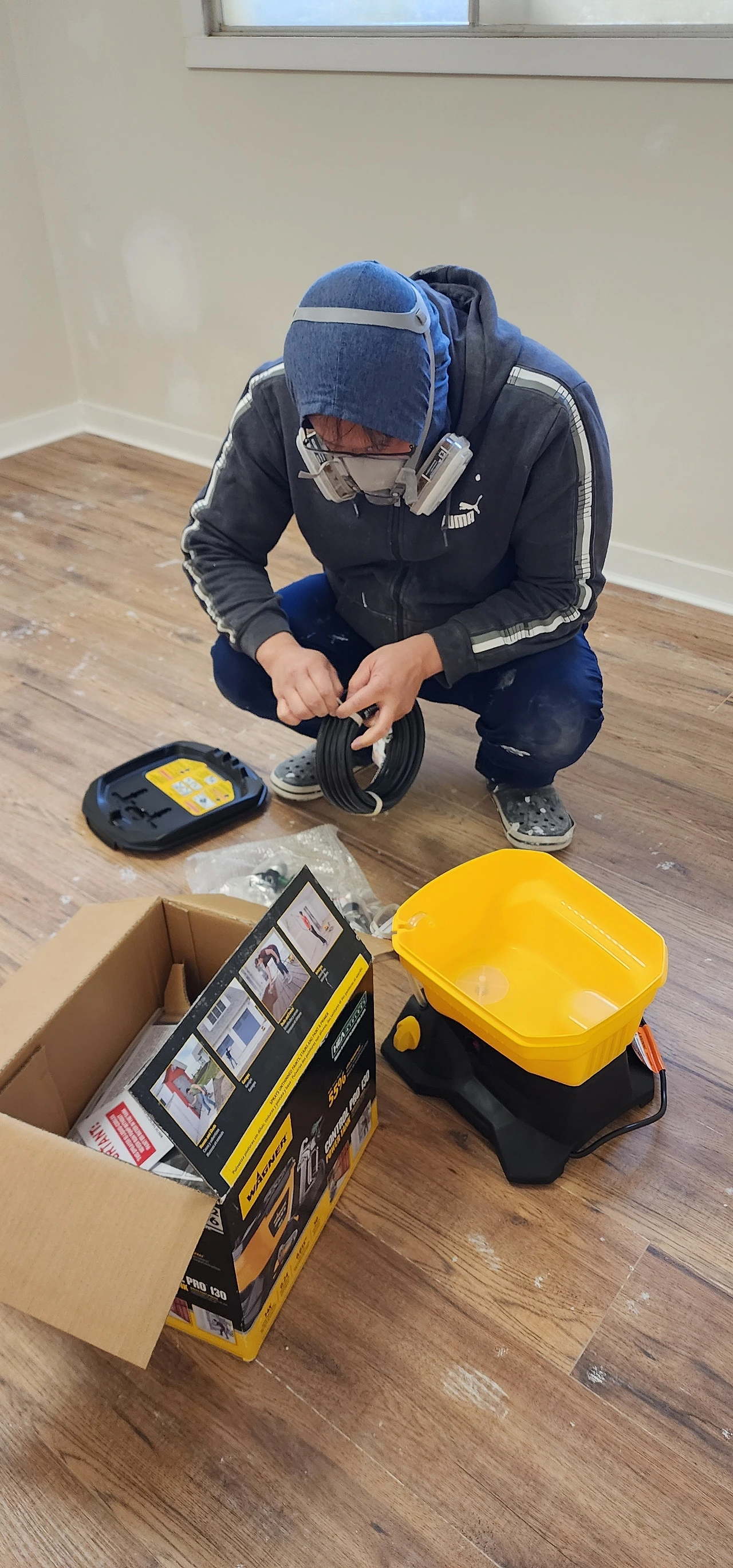 전날 붓으로 칠 할 수 있는 범위가 아니라는 걸 판단한 남자들은 스프레이 기계를 사 왔다. 온 집안을 다 칠하고도 남을 거라던 5 갤론 페인트와 함께, 우리는 야심 차게 페인트를 시작했다. 하지만 이 작업 또한 유튜브 영상에서 보는 것 같이 쉬워 보이지는 않았다.