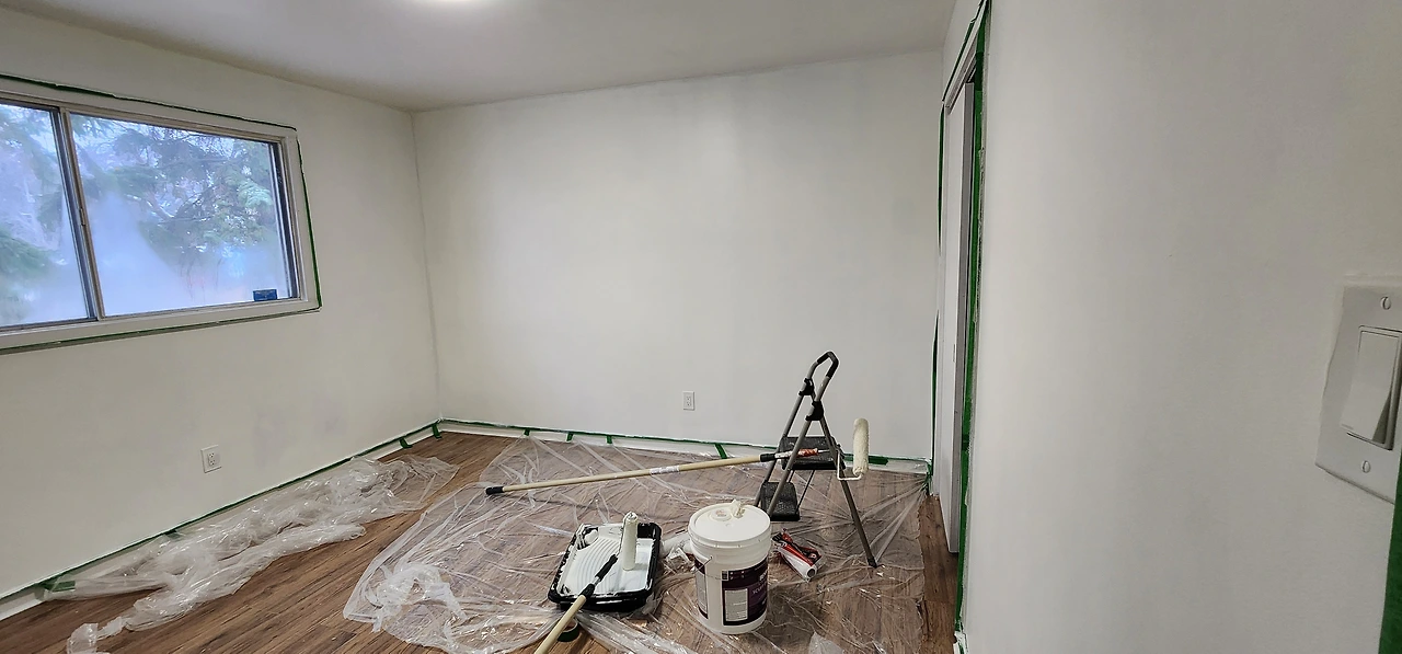연습 삼아 방 한 개를 칠해보았다. 바닥에 대충 비닐을 깔기는 했지만 바닥에 떨어진 페인트가 계속 마음에 걸리는 건 나뿐인 것 같다. 아주 작은 점으로 전체적으로 바닥에 분사가 되어 떨어진 페인트를 어떻게 지워야 하나?