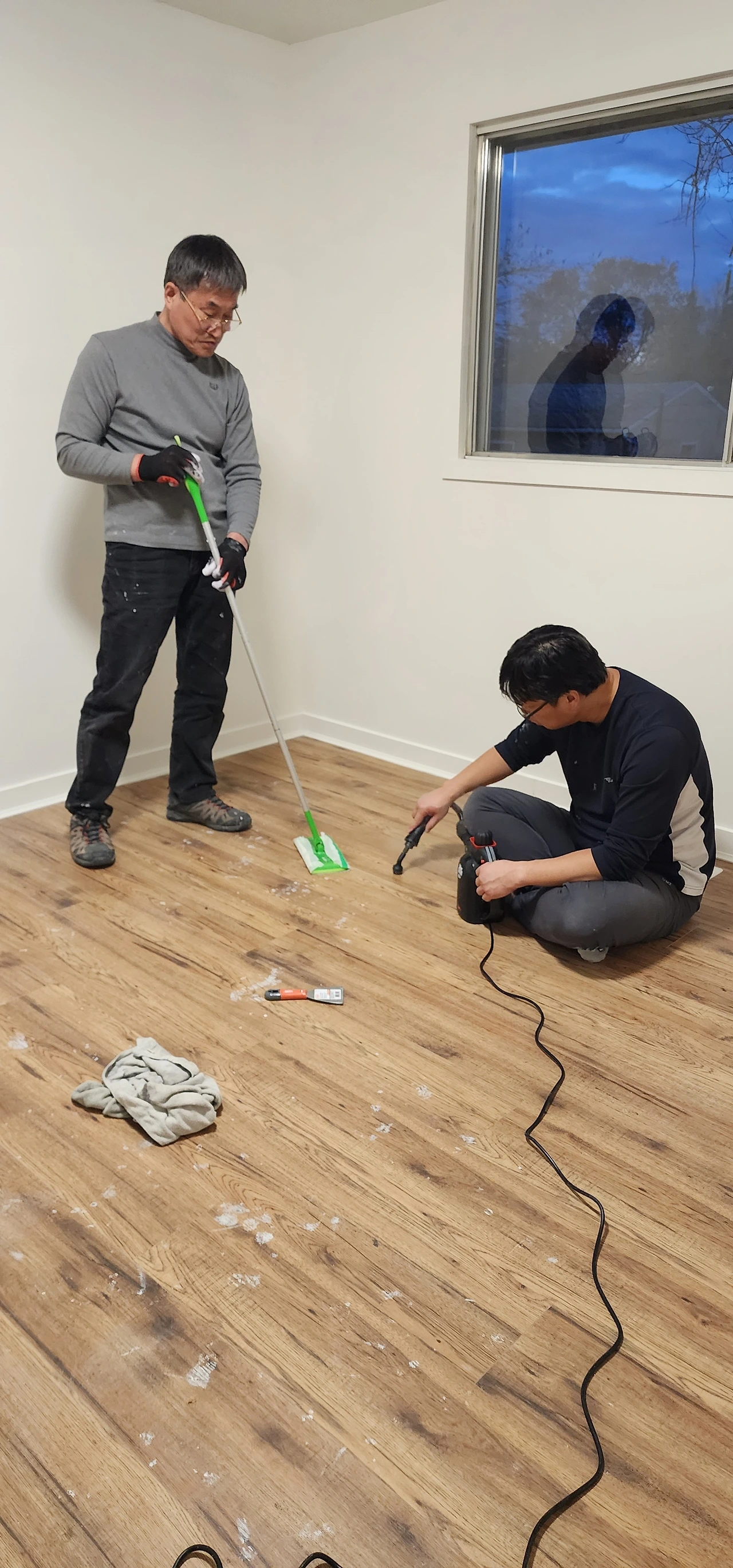 방에 페인트를 남겨둔 채 오늘 작업을 마무리한 게 자꾸 마음에 걸렸는데 아빠도 마찬가지셨나 보다. 난 열심히 스팀기로 페인트를 녹이고 아빠는 열심히 걸래로 닦아내셨다. 몇 분 지나지 않아 집중력과 체력의 한계에 도달하자 울렁울렁 멀미가 나기 시작했다. 이제 그만하자는 말이 나오려는 순간 "혜진아. 여기 닦아놨다. 여기 여기! 이쪽으로 건너와라" 아빠가 열심히 초벌작업을 해서 나를 부르셨다. 귀신에게 홀린 억지로 이끌려 방 두 개를 깨끗하게 청소했다.