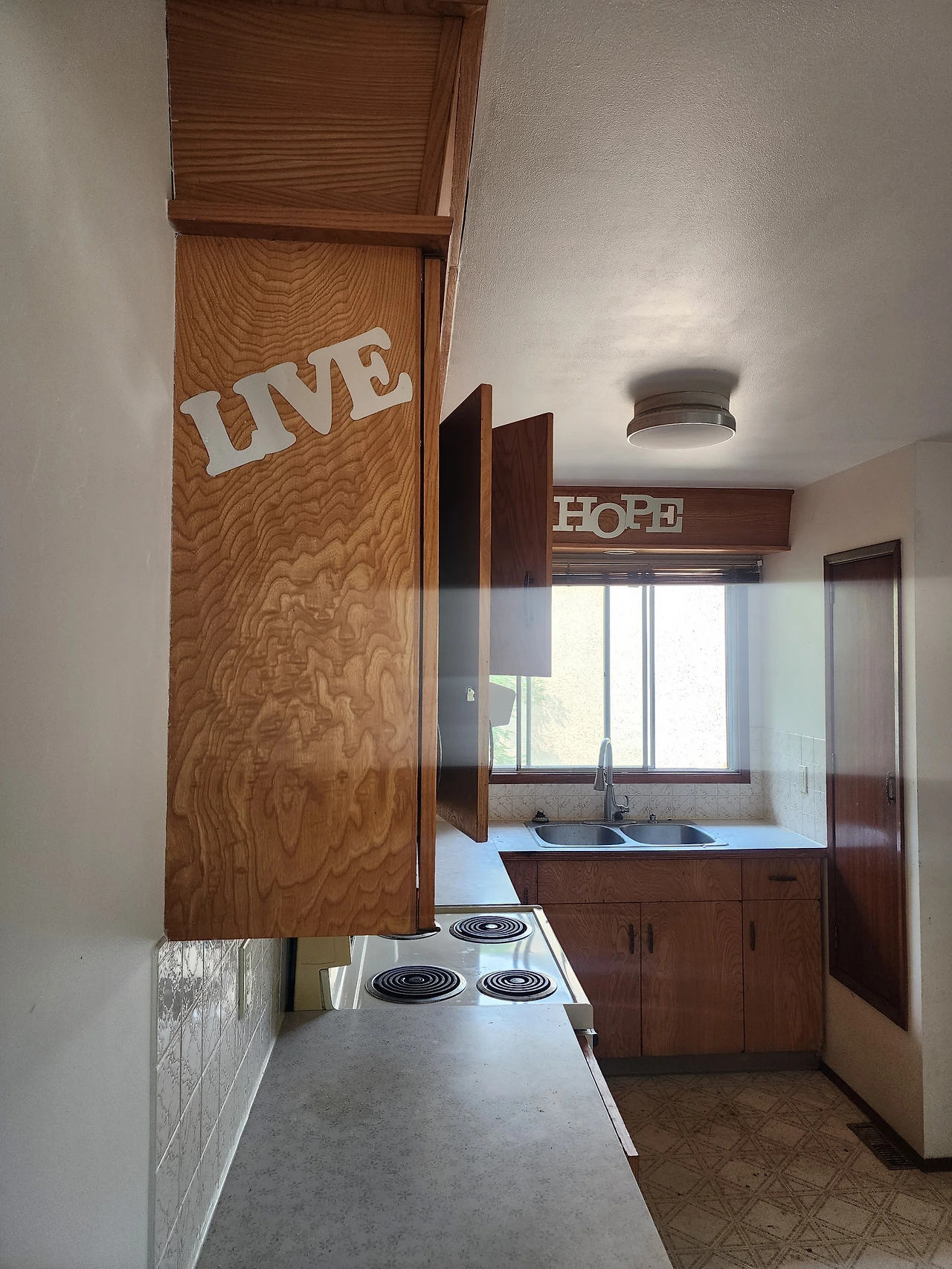 캐서린이 일을 마치고 집으로 돌아와 자신을 위해 따뜻한 저녁을 지었을 오래된 부엌에는 누구를 위한 희망인지 그 대상을 잃어버린 HOPE이란 단어만 온전히 그 모양새를 유지하며 단어의 의미가 무색하게 우리를 내려다보고 있었다.