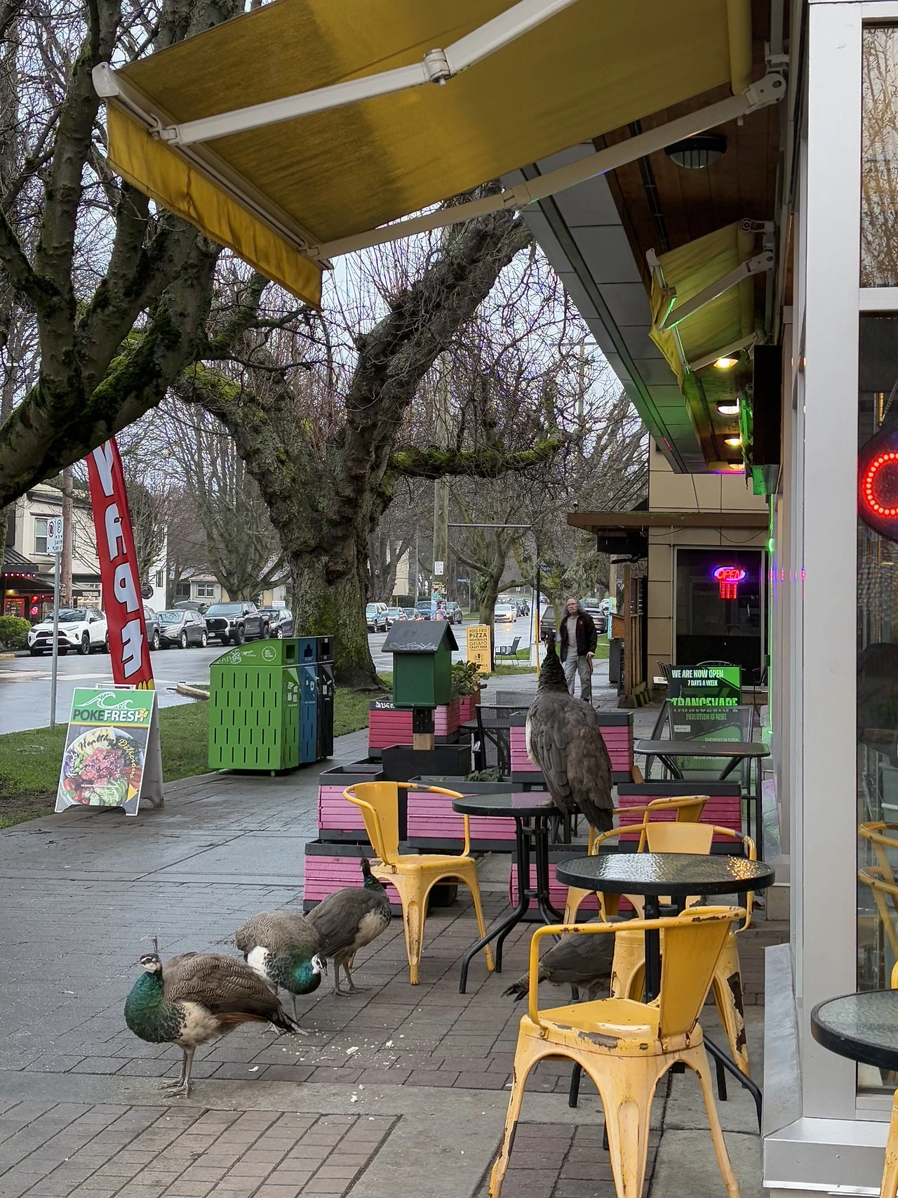 오늘은 어학원 같은 반 친구들에게 한국음식을 소개해주기로 했다. 마침 홈스테이 가족들로부터 한식당을 한 곳 추천받아서 나도 가보고 싶던 참이었다. 걸어가는 길에 보인 공작새들, 이곳이 바로 캐나다.
