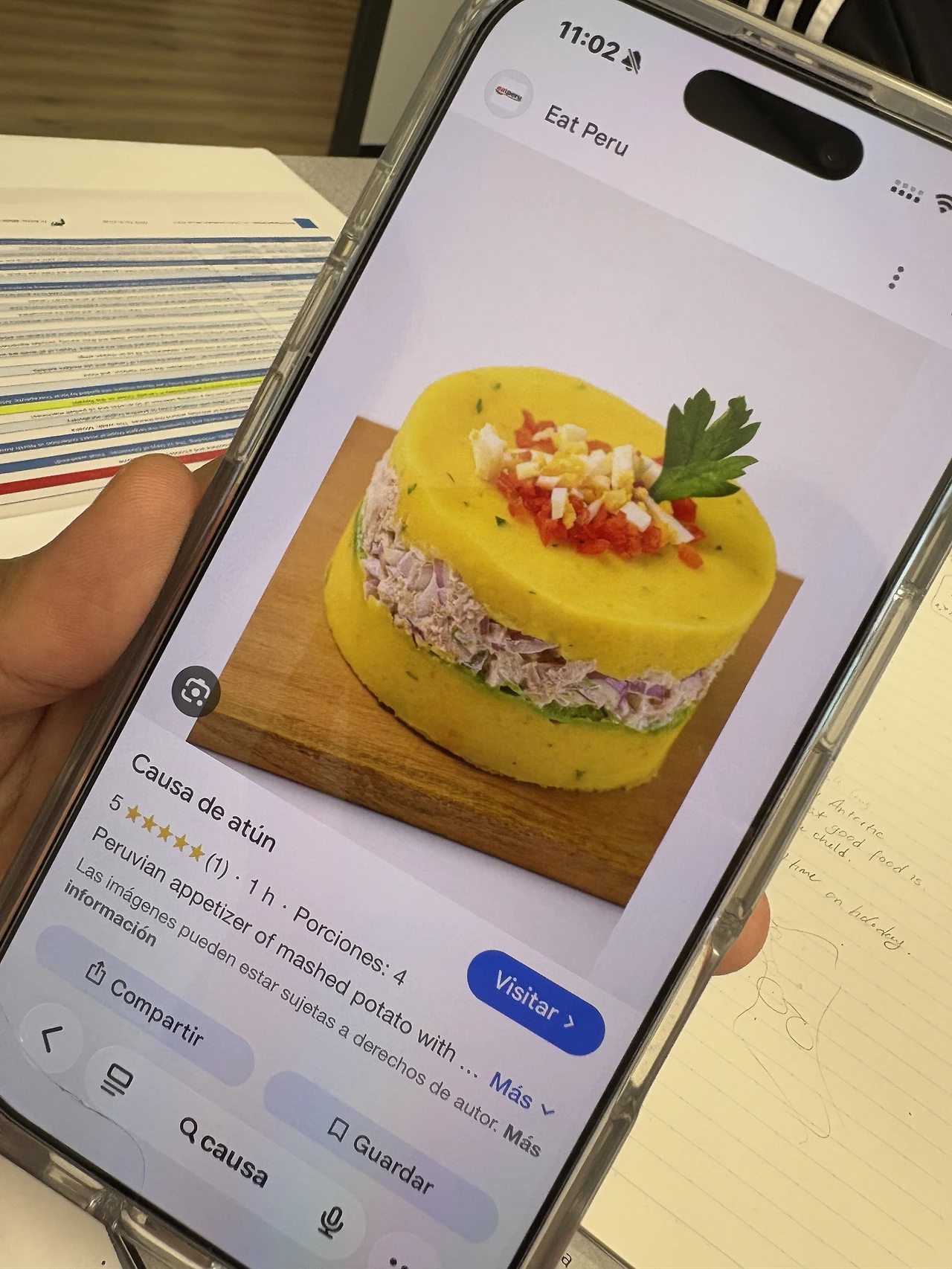 페루 친구가 소개해준 페루의 음식. 꼭 케이크처럼 생겼는데 감자무스 비슷한 것에 참치가 안에 들어간다고 했다.